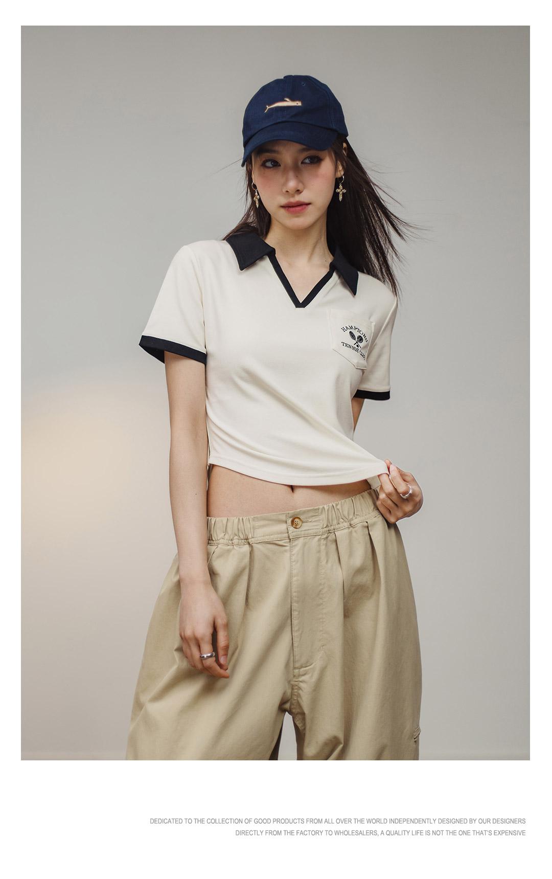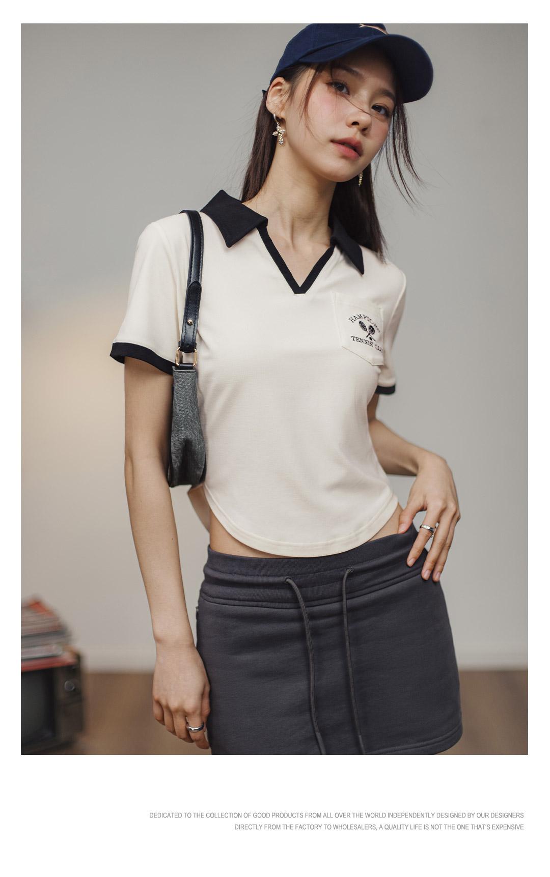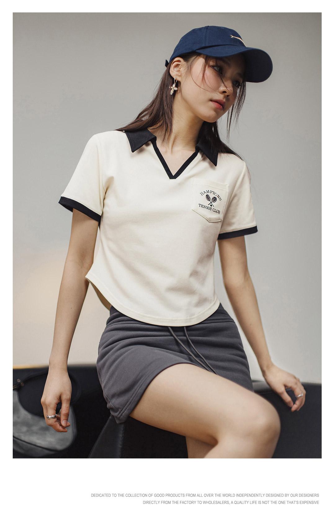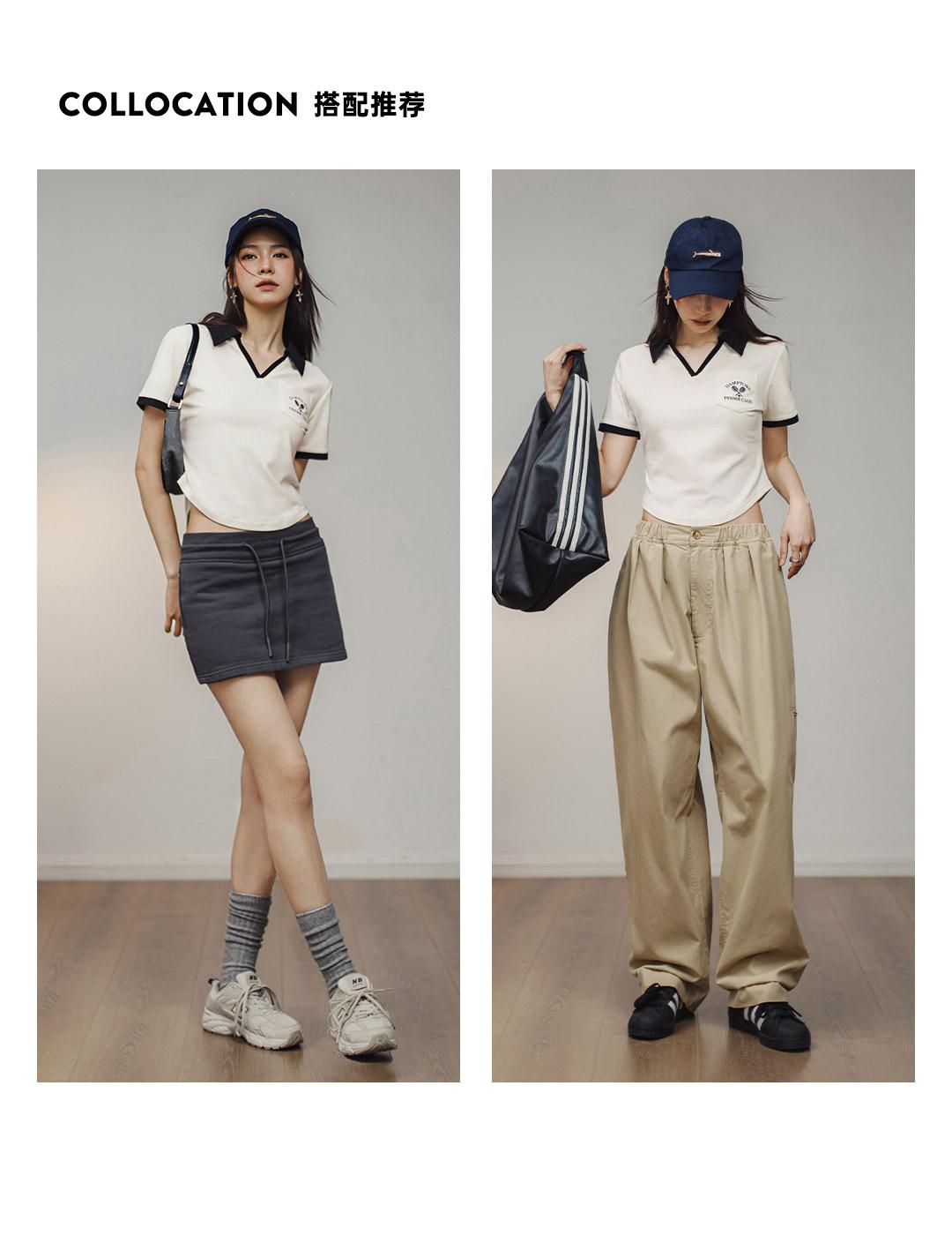 마덴 빈티지 브이넥 셔츠 여성 캐주얼 대비 티셔츠
