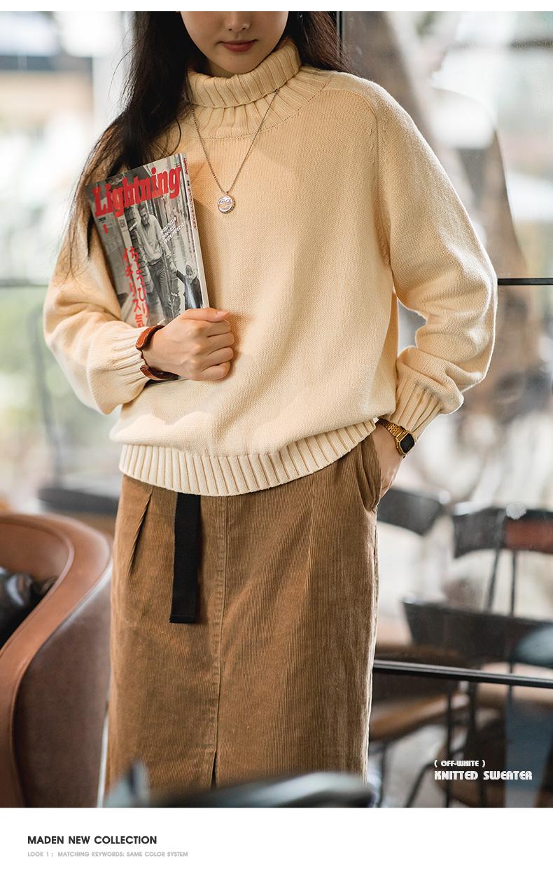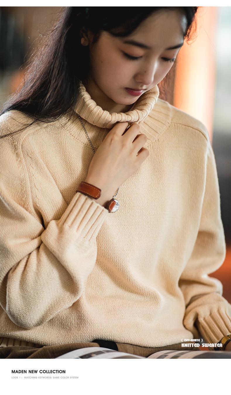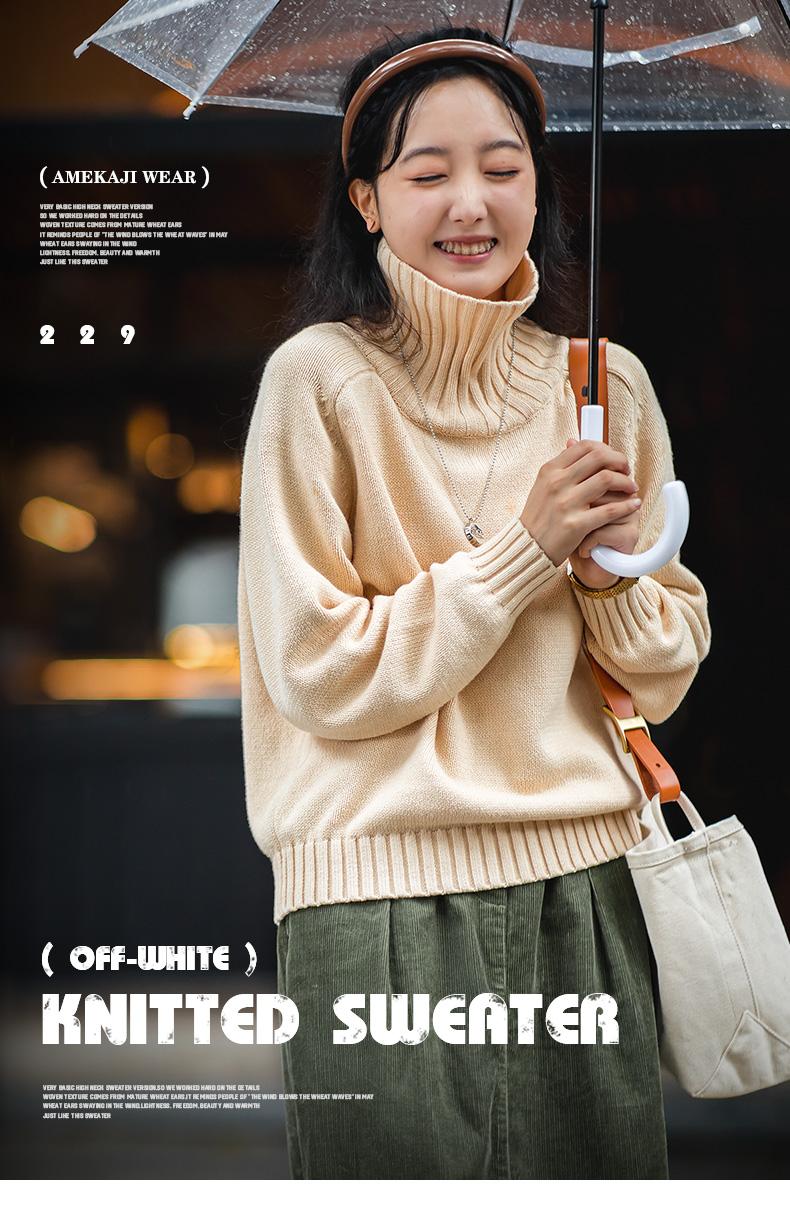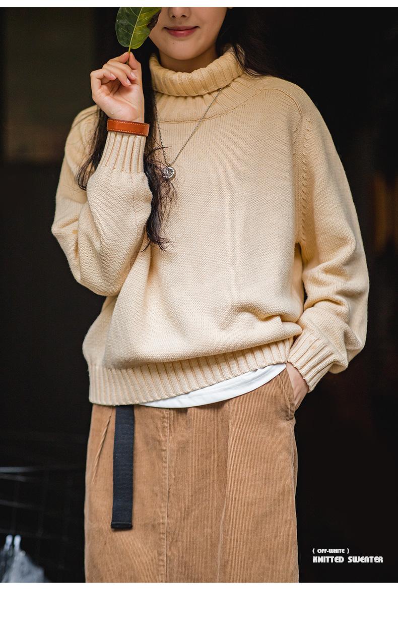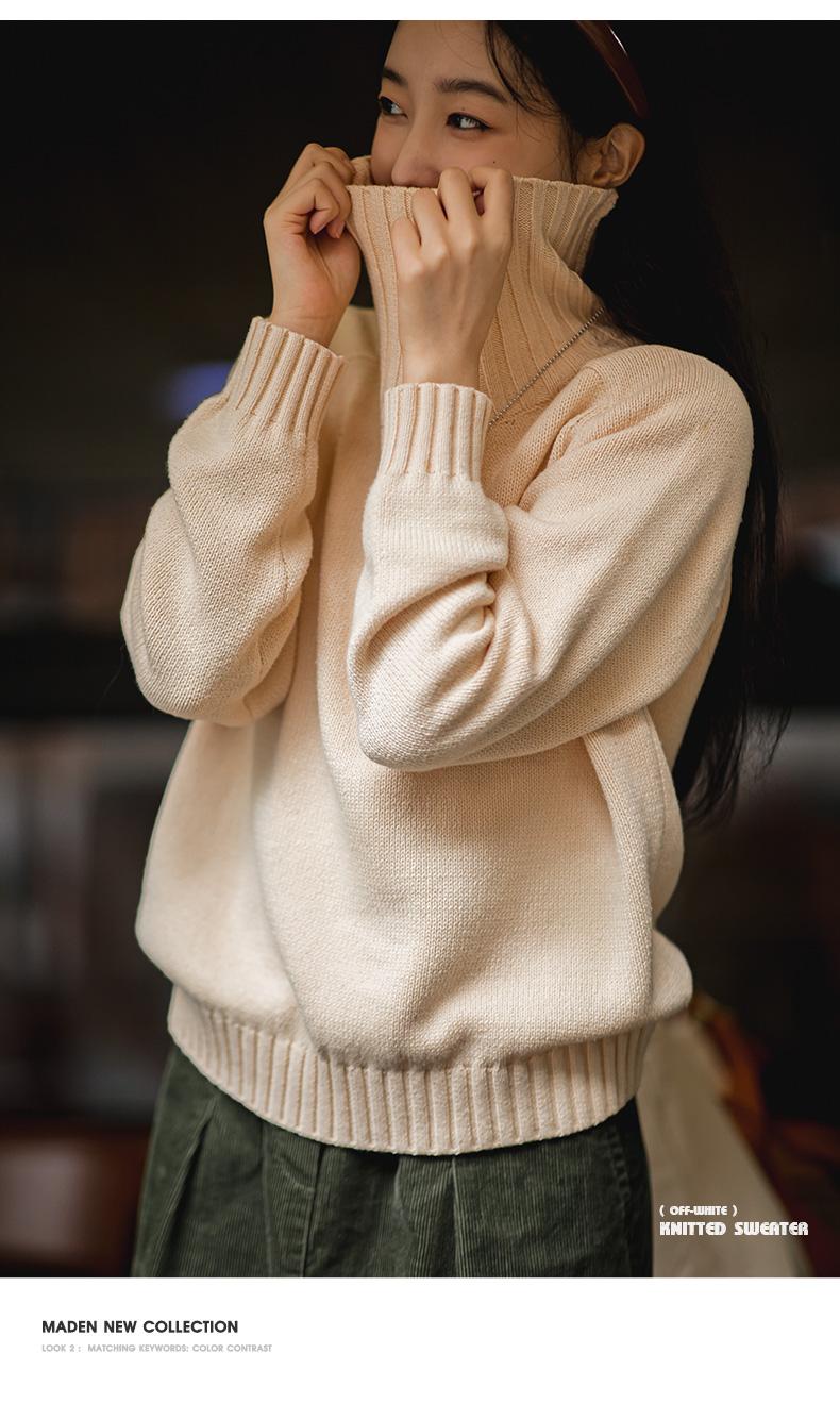 마덴 여성 하이넥 스웨터 가을 겨울 두꺼운 따뜻한 니트 의류 밀 이삭 질감 스웨터 베이지색 풀오버 상의