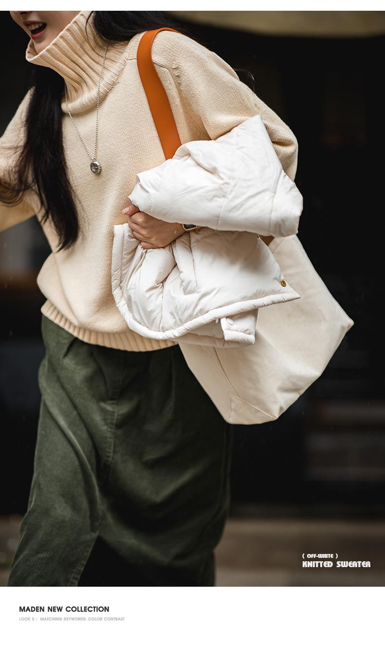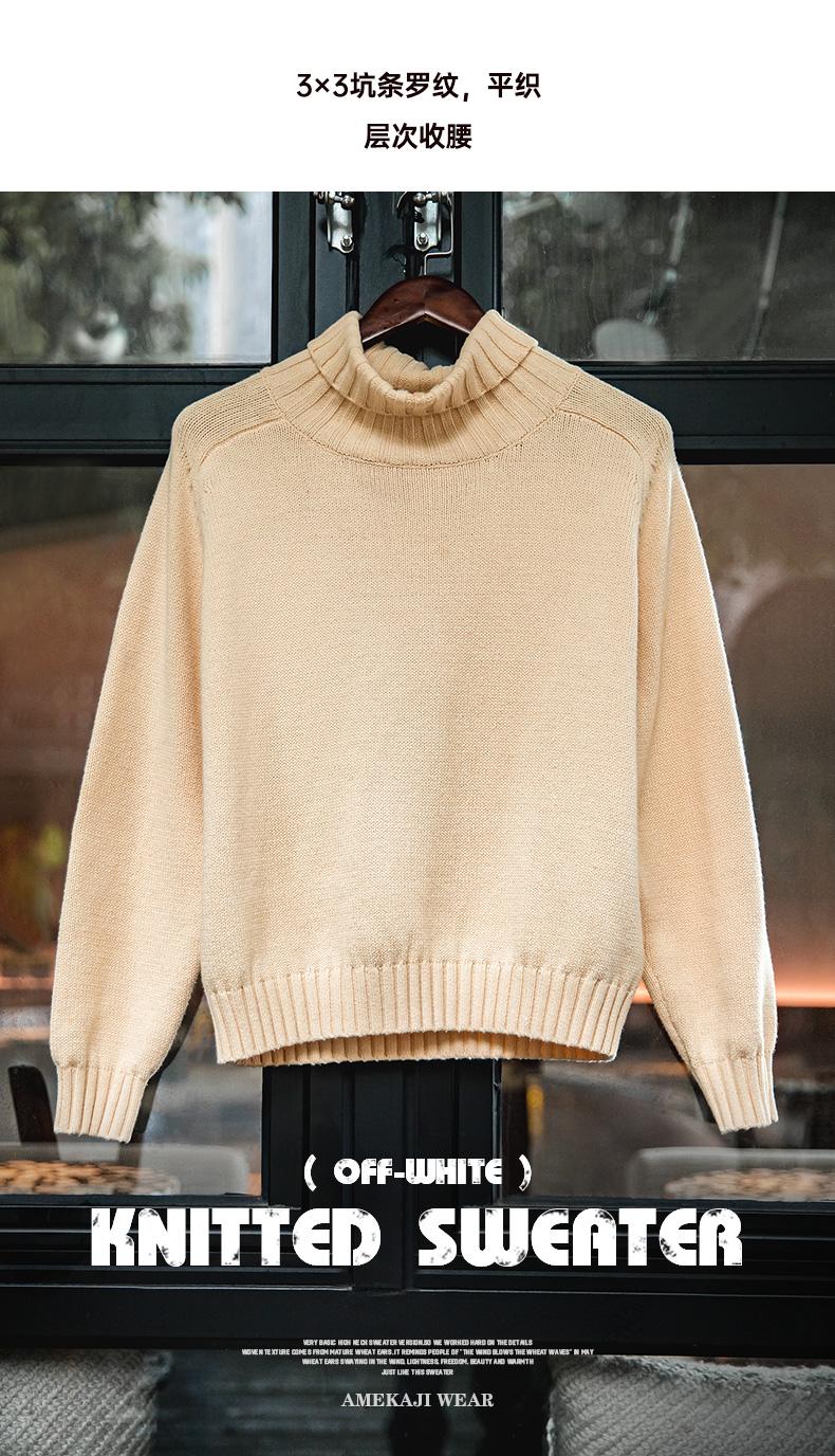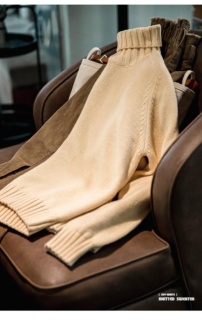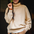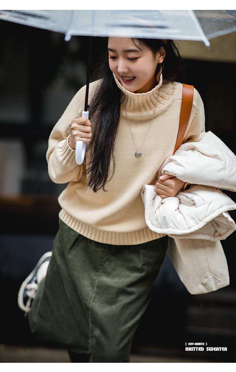 마덴 여성 하이넥 스웨터 가을 겨울 두꺼운 따뜻한 니트 의류 밀 이삭 질감 스웨터 베이지색 풀오버 상의