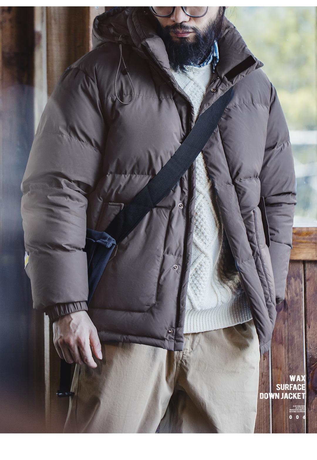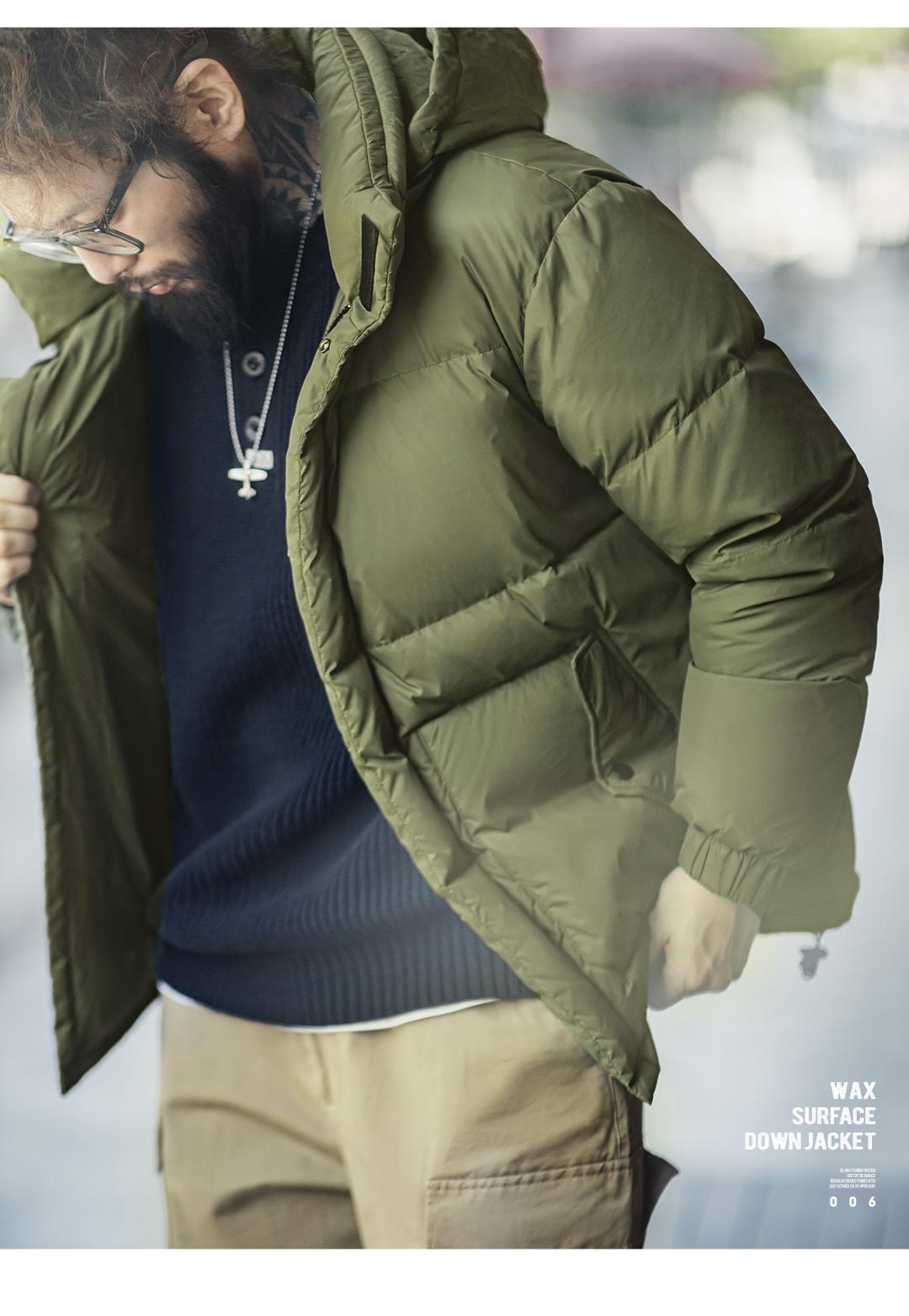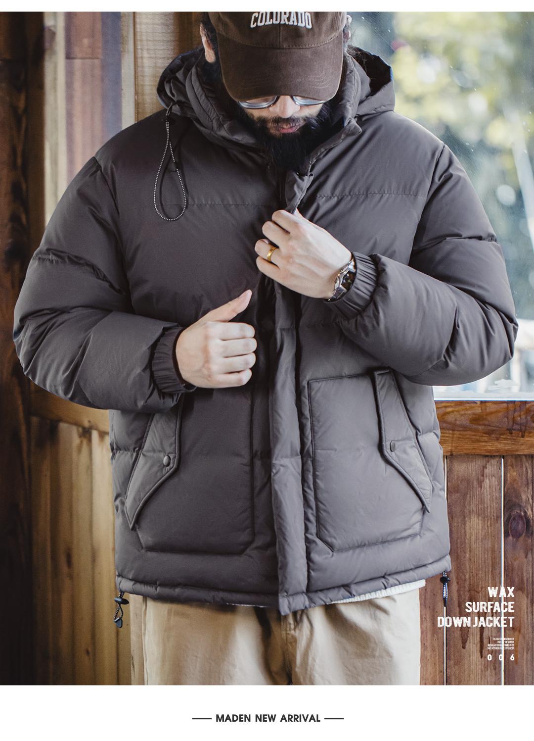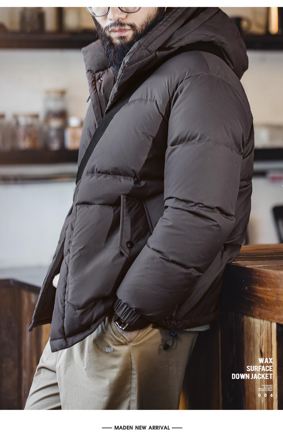 MADEN Winter Wax Surface Down Jacket for Men Removable Hooded Thickened Warm Stand-up Collar Coat Men's Padded Outwear Clothing