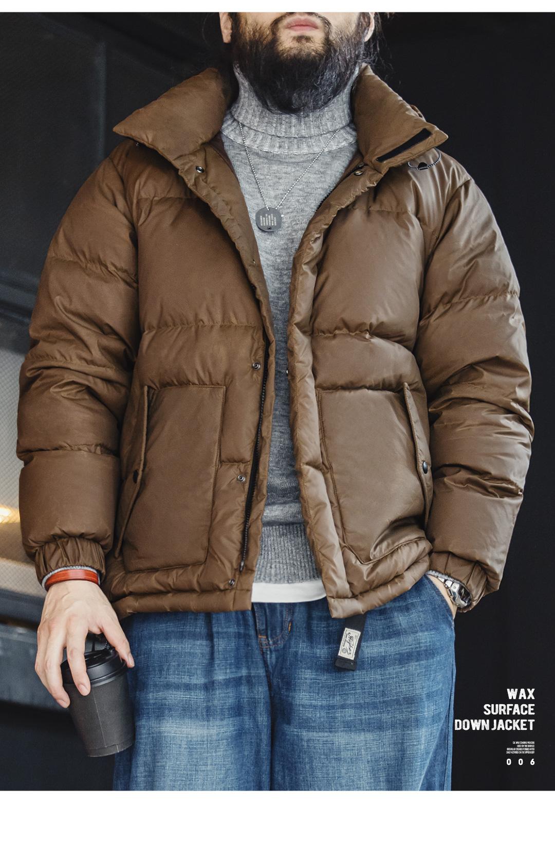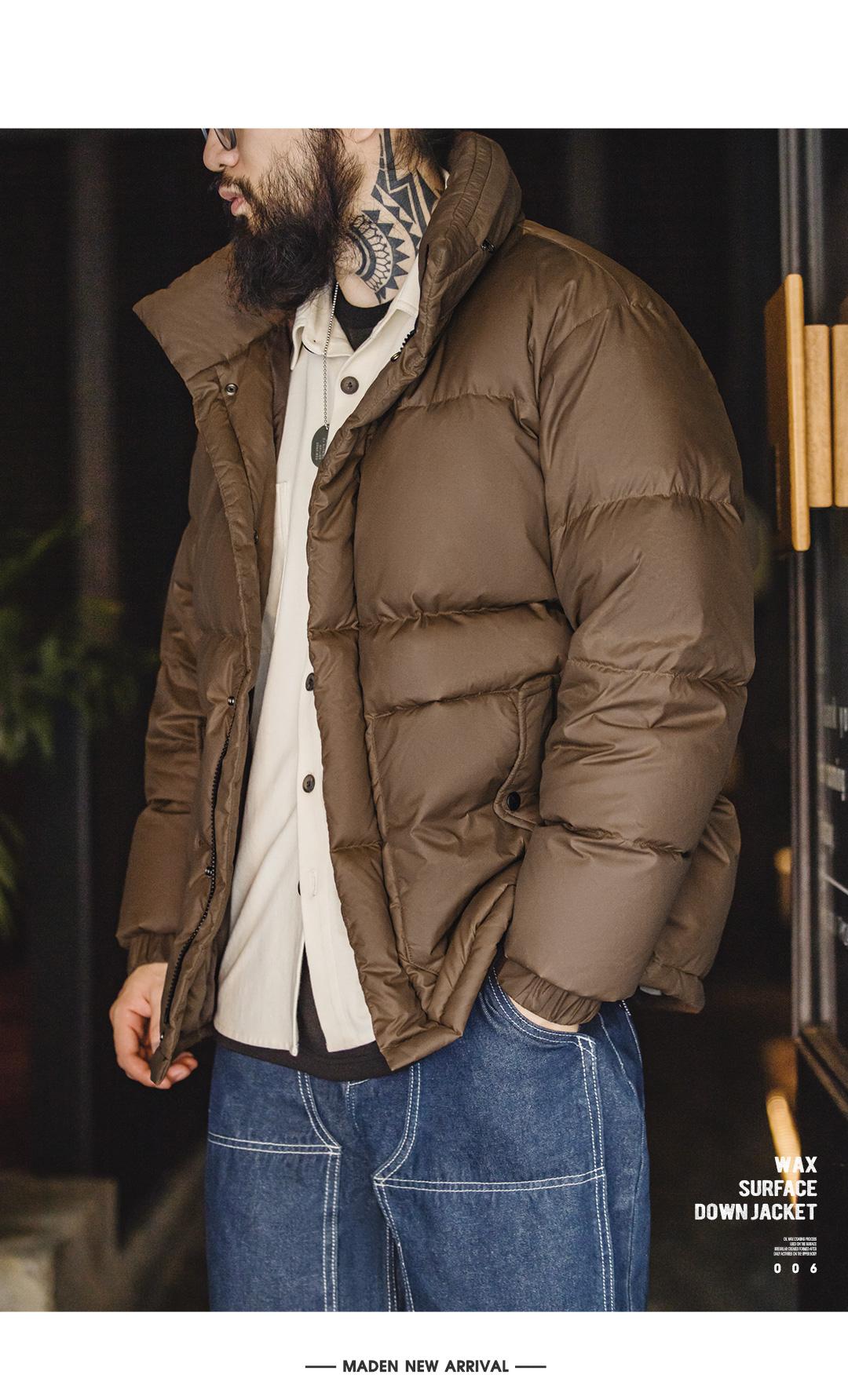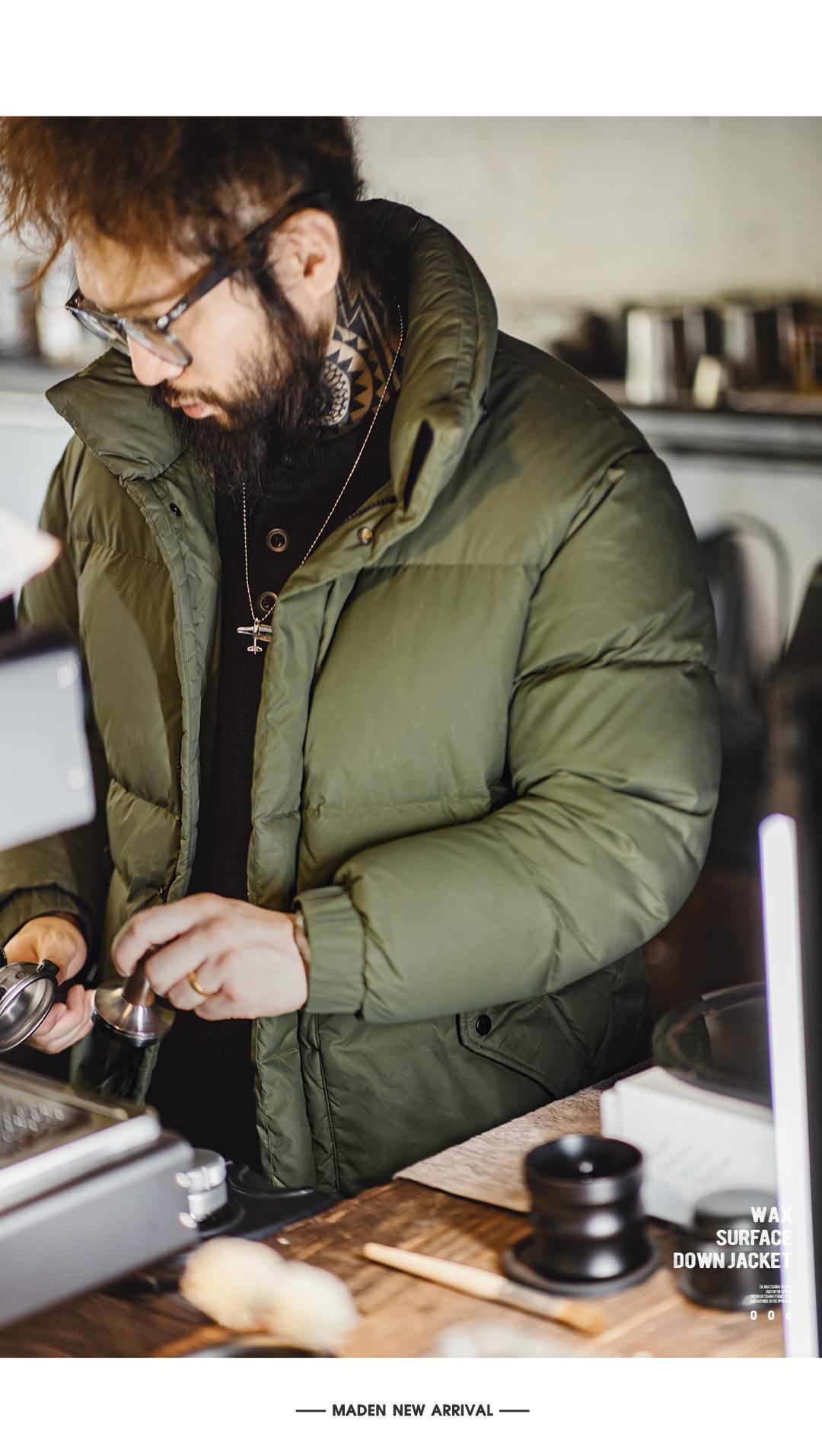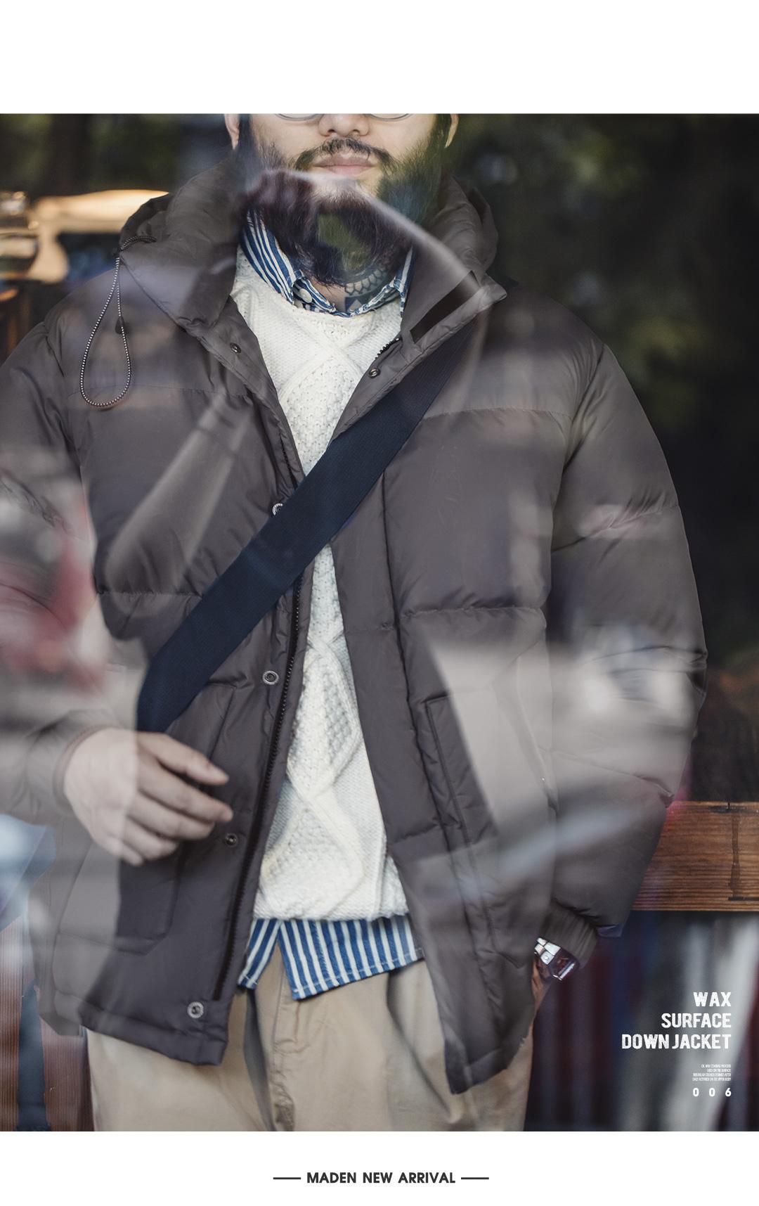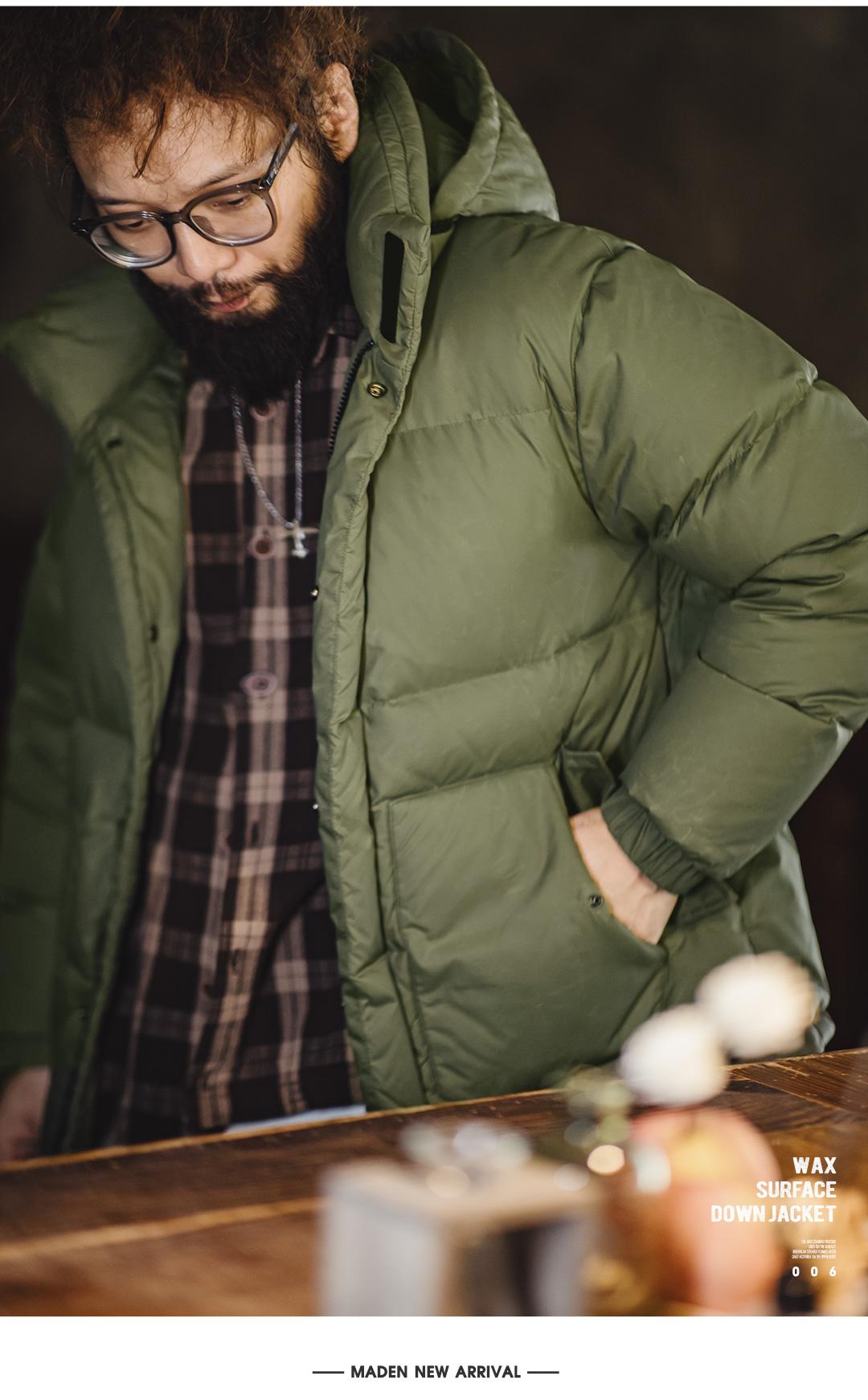 MADEN Winter Wax Surface Down Jacket for Men Removable Hooded Thickened Warm Stand-up Collar Coat Men's Padded Outwear Clothing