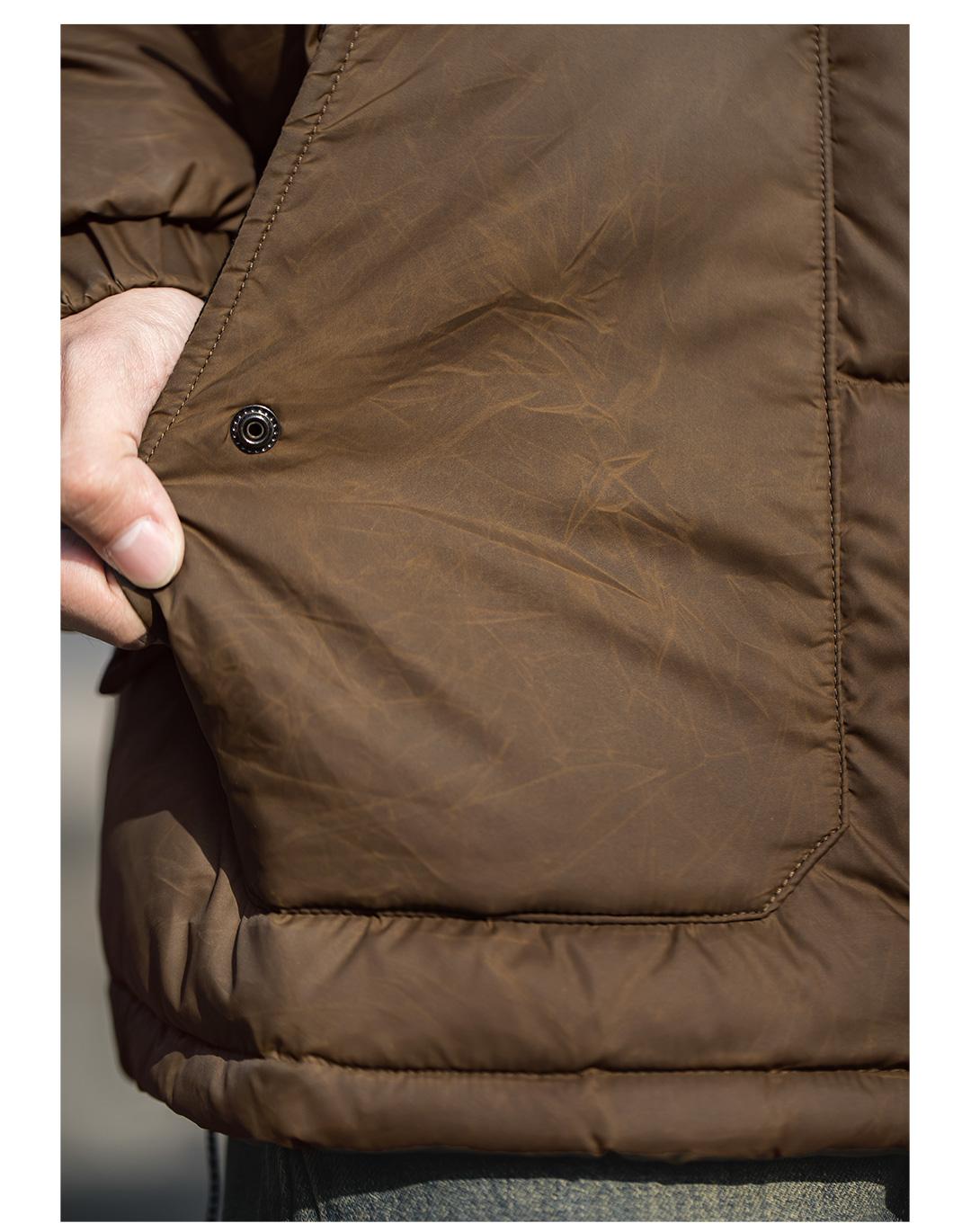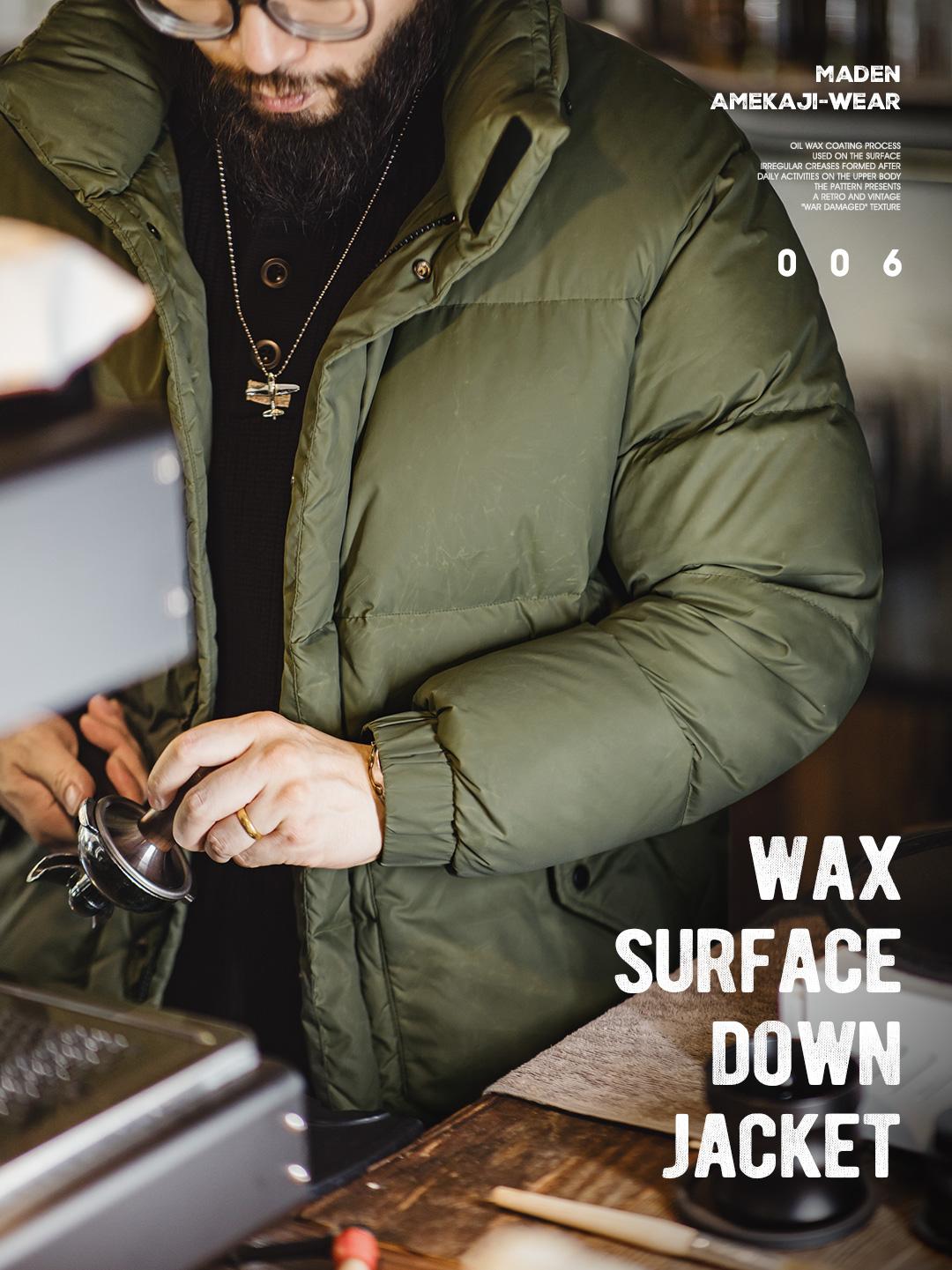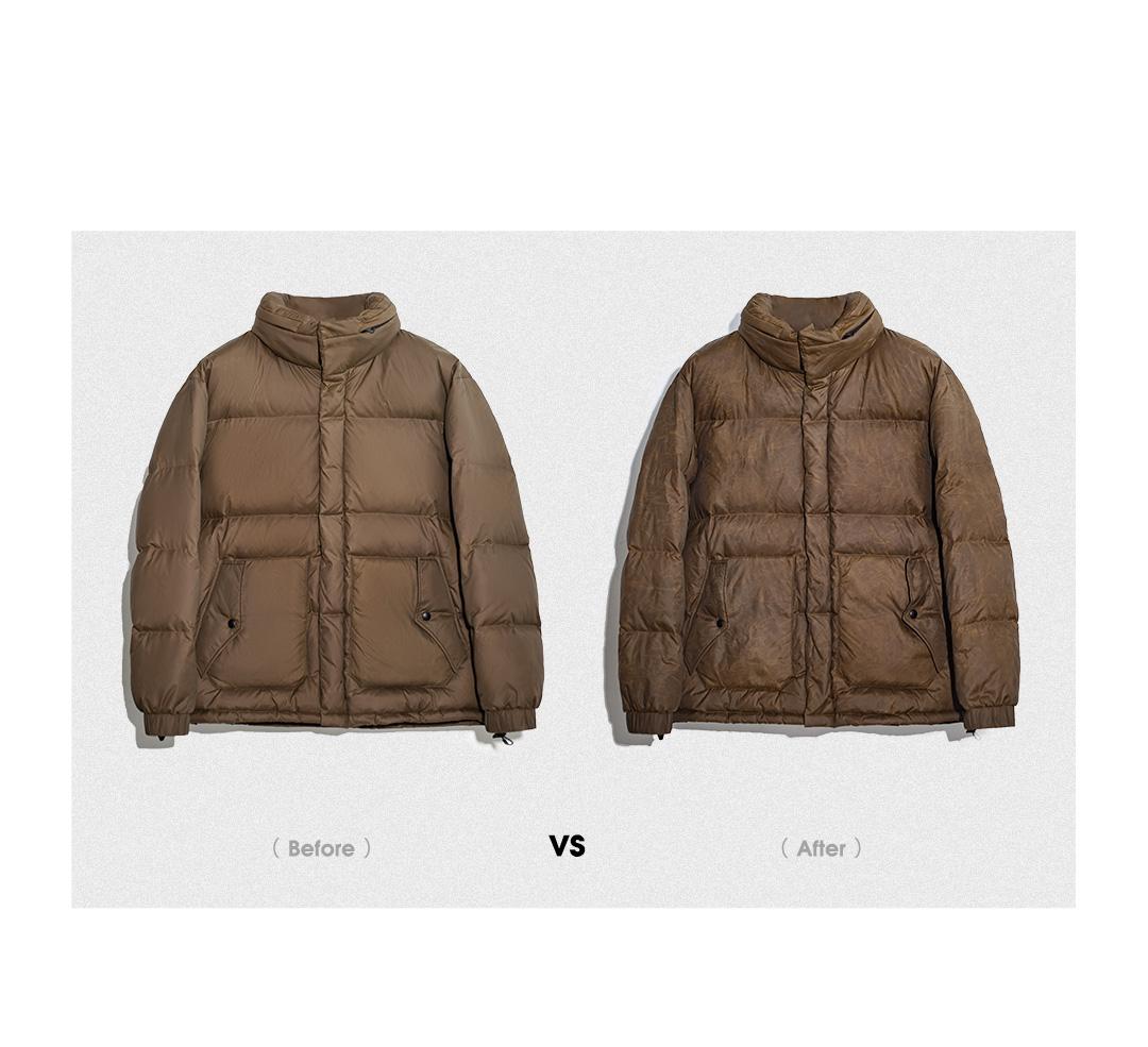 1.Vintage waxed surface down jacket. Due to the characteristics of the waxing process, the texture will gradually become smooth when heated. PS: Daily washing and drying are not recommended.