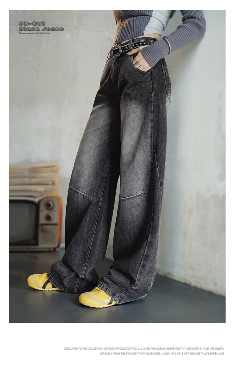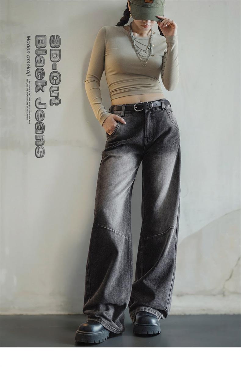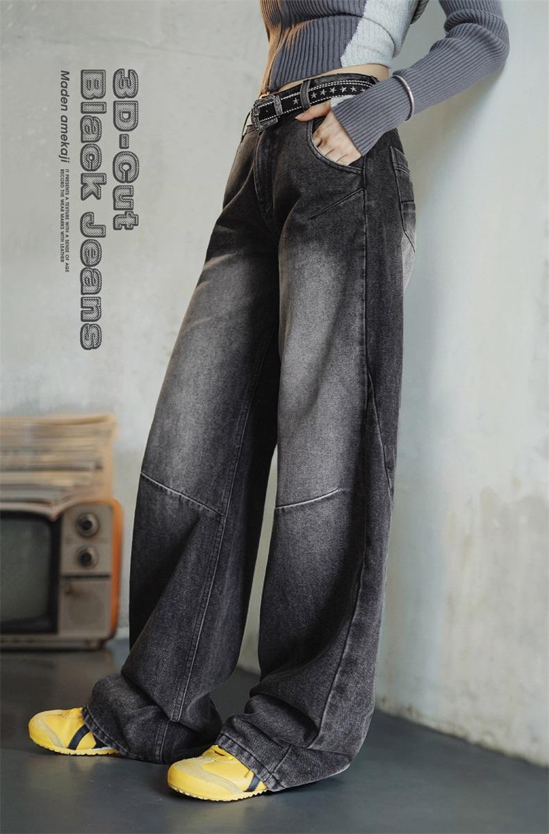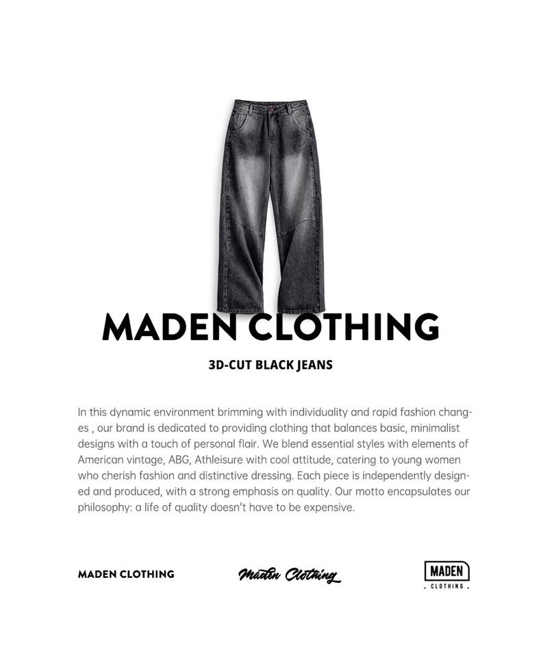 MADEN 3D-Cut Black Jeans for Women Mid-waist Straight Pants Spring and Fall Season Casual Trousers Streetwear Jeans