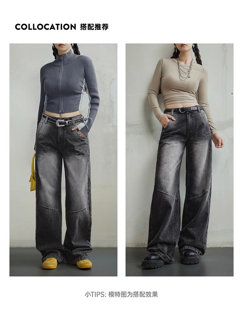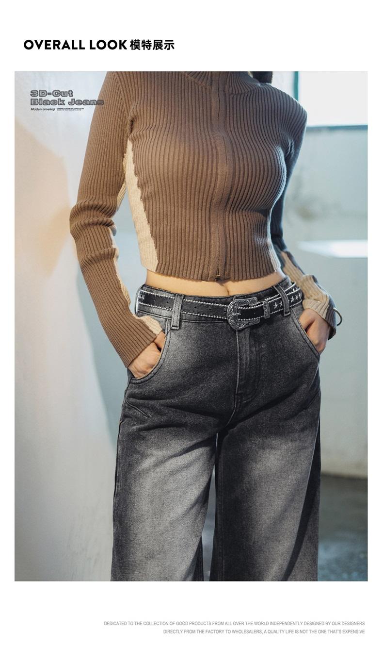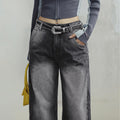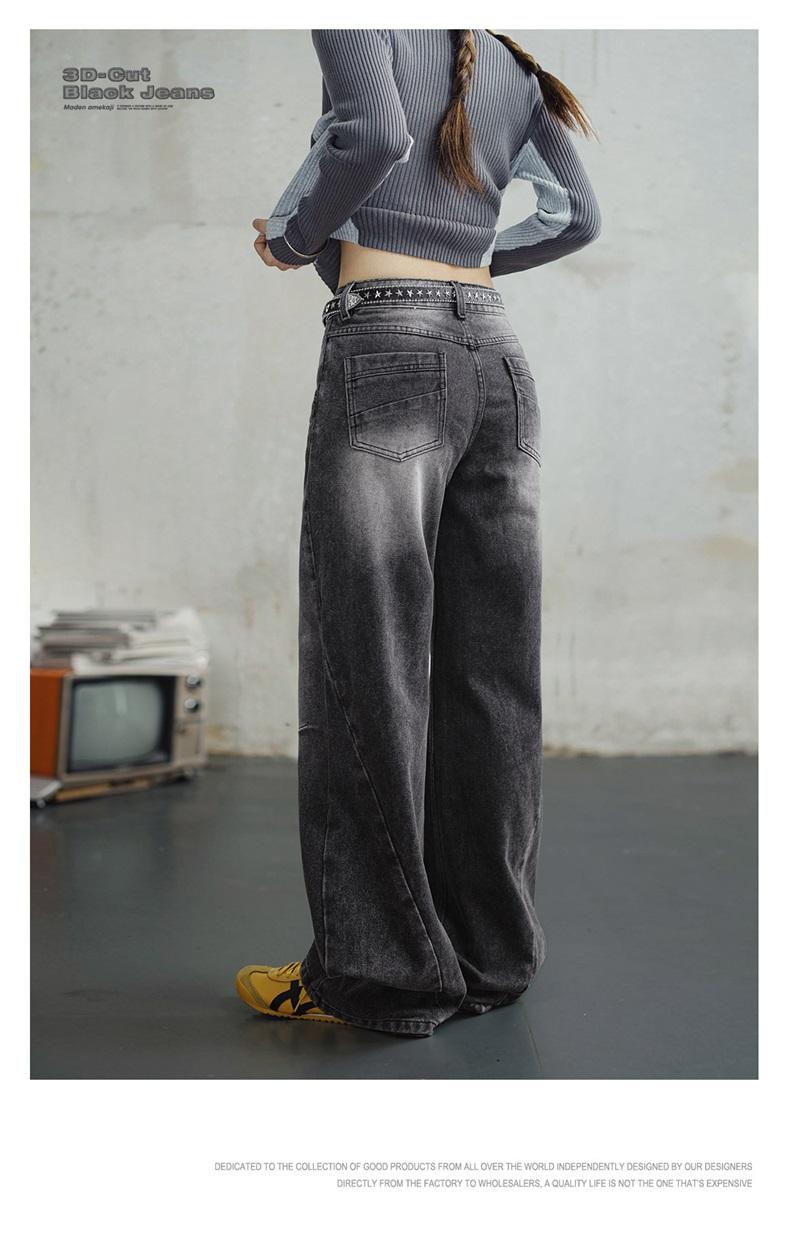 MADEN 3D-Cut Black Jeans for Women Mid-waist Straight Pants Spring and Fall Season Casual Trousers Streetwear Jeans