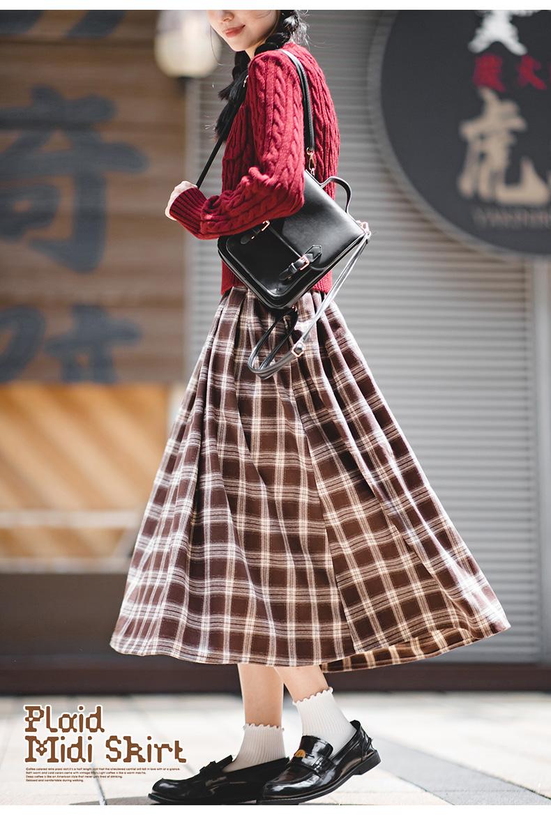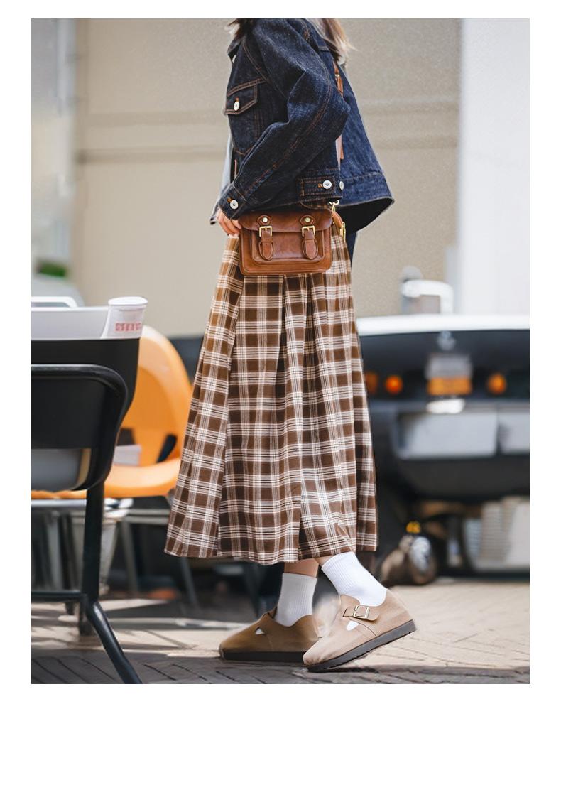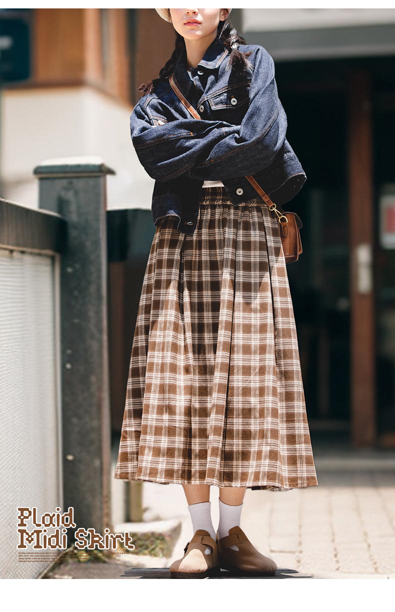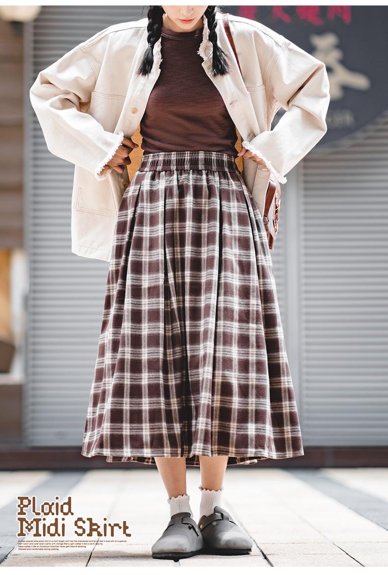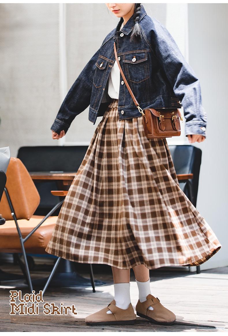 Maden Women's Plaid Skirt - Vintage Relaxed High Waist
