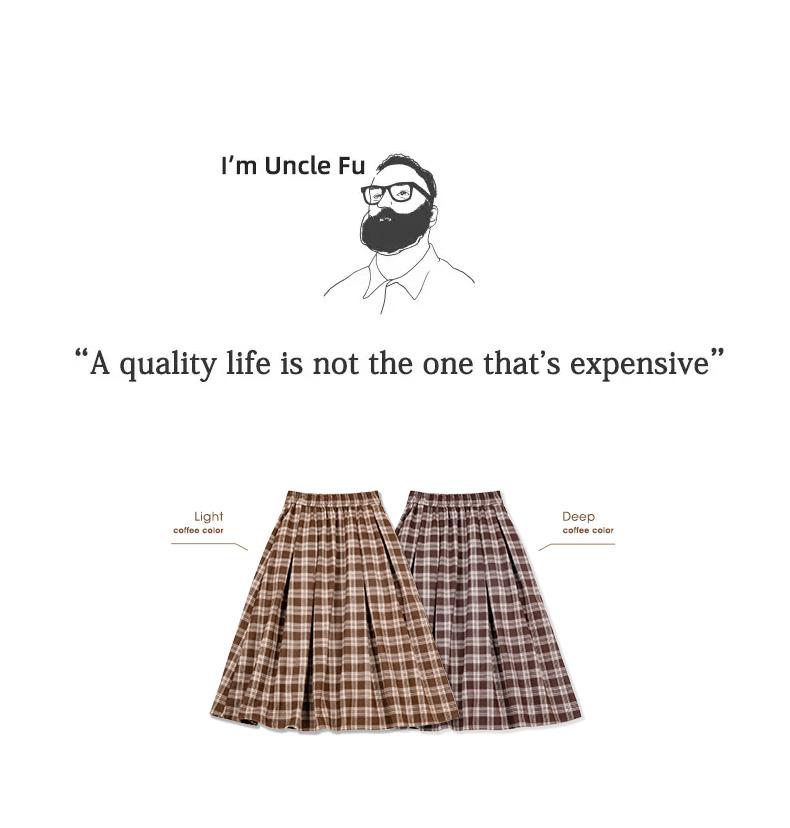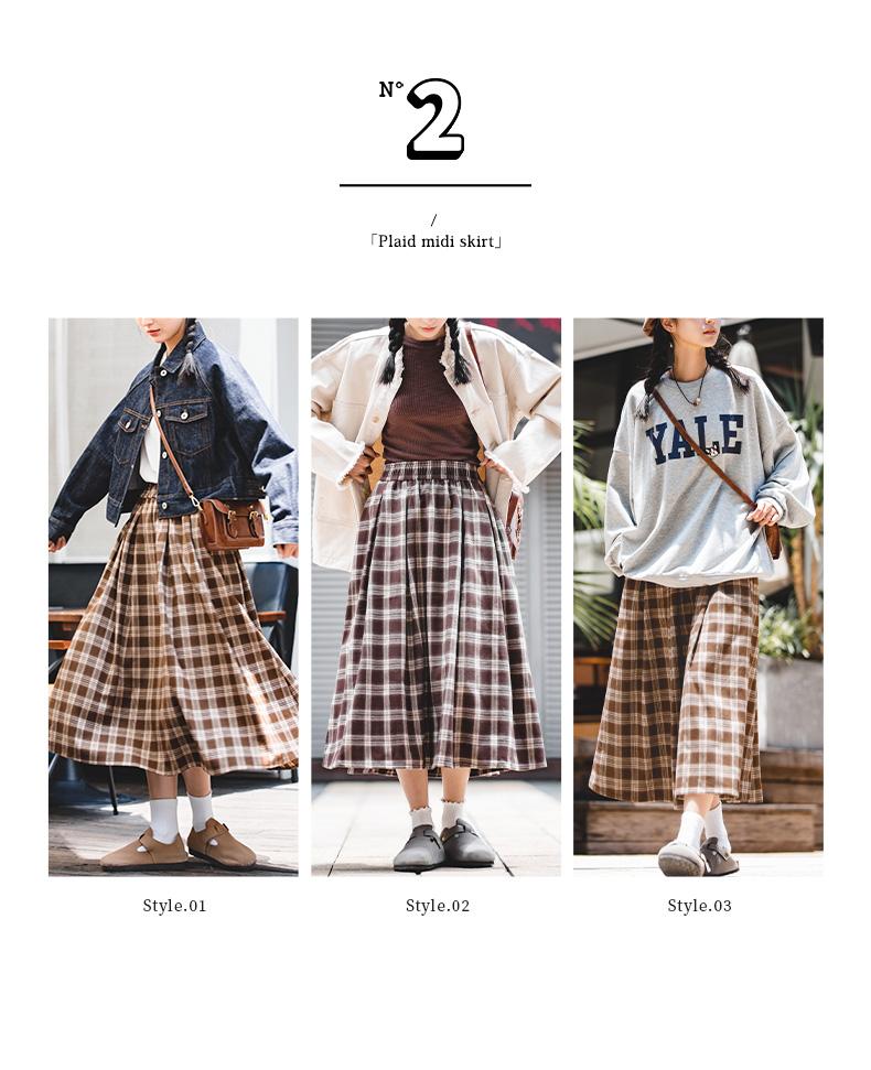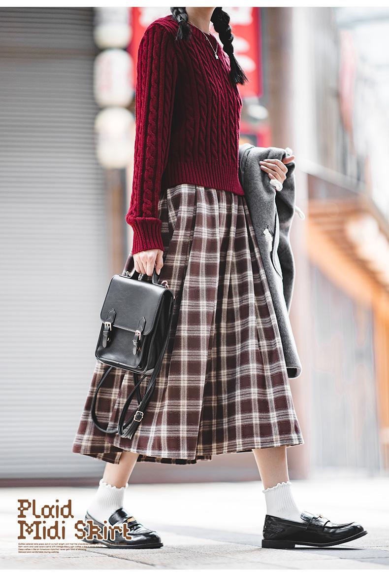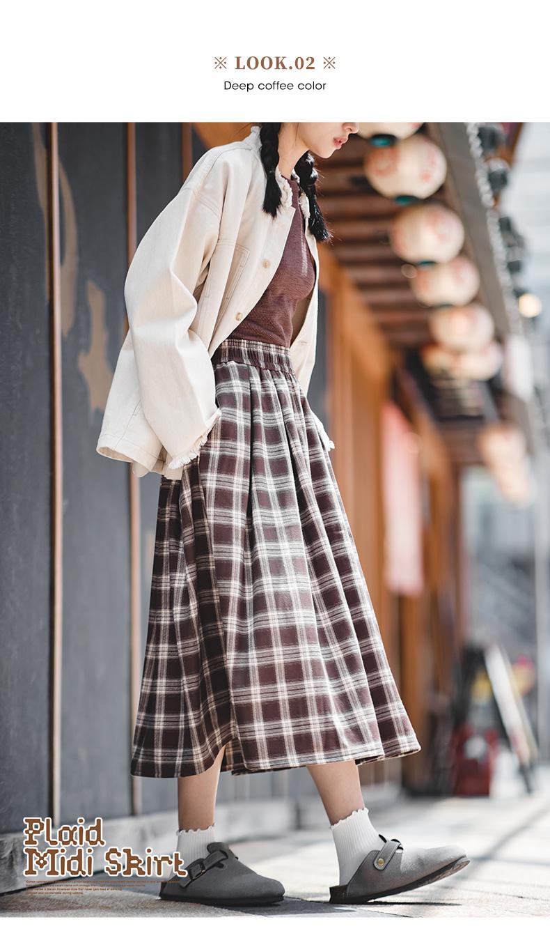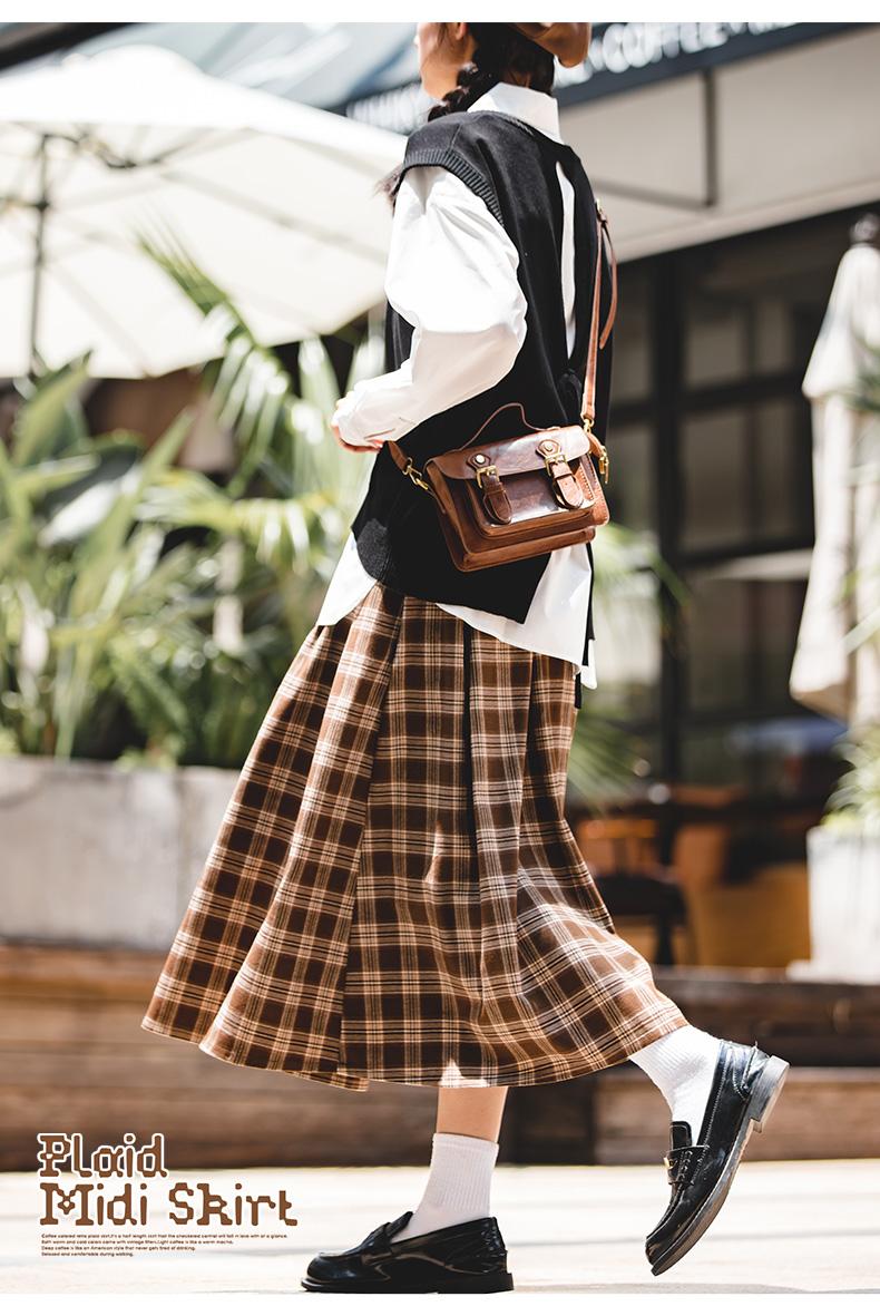 Maden Women's Plaid Skirt - Vintage Relaxed High Waist
