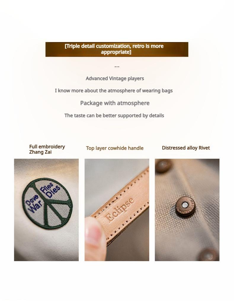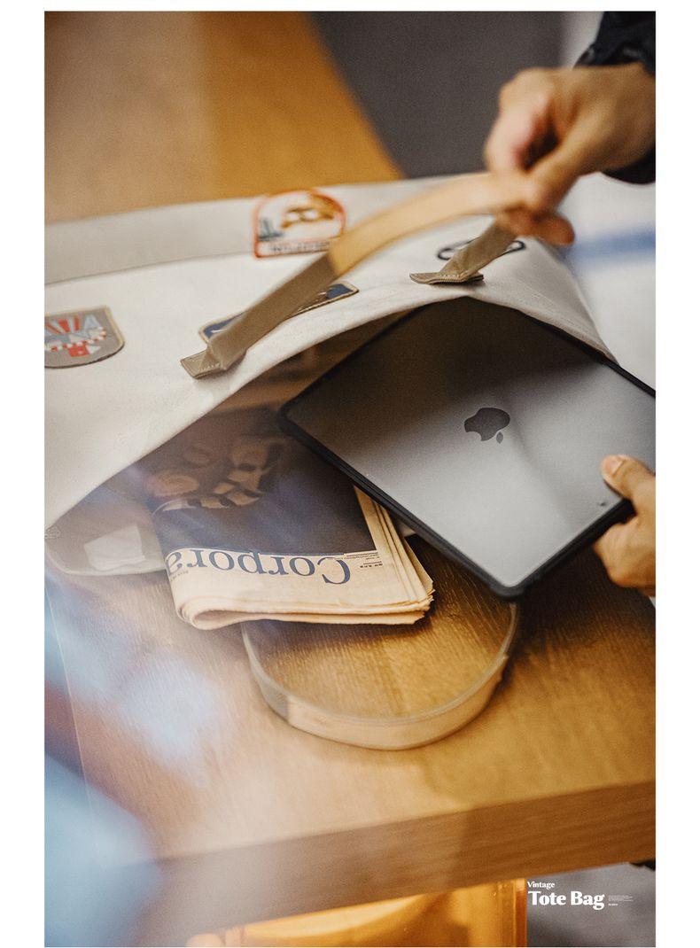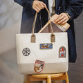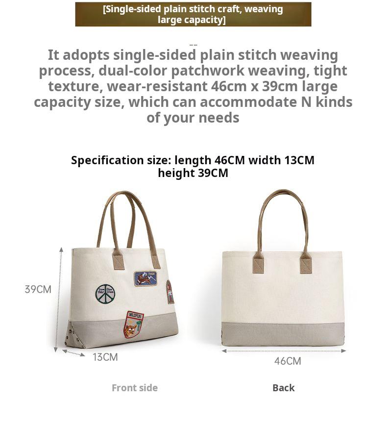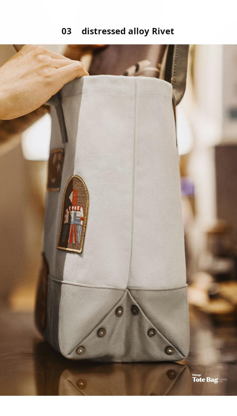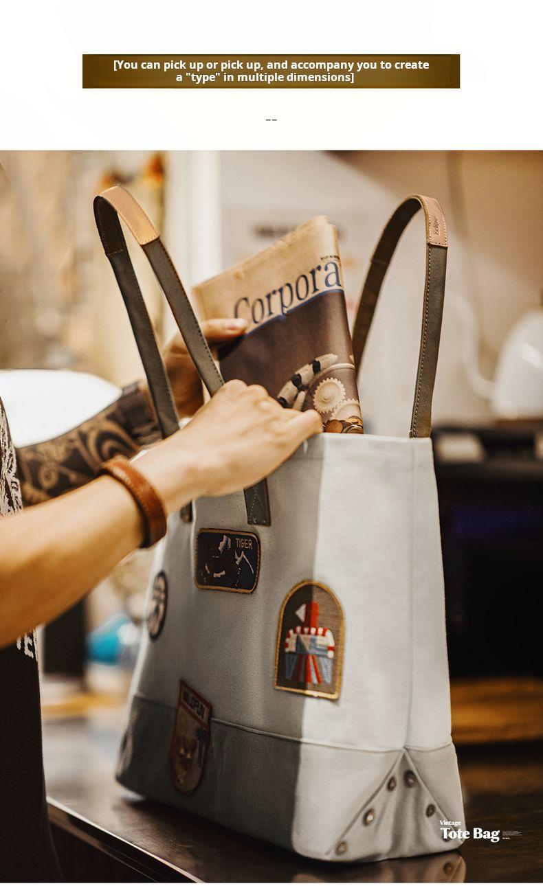 MADEN Retro Embroidery Patches Tote Bag Unisex Large Capacity Utility Shoulder Bag Camera & Laptop Carryall Workwear Versatile Bags