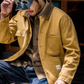 1. Classic lapel, straight cut, 5-button placket, and 4 signature patch pockets, presenting a retro workwear style with a strong American rugged feel.