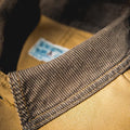 3. Corduroy trim on the collar and canvas body; both fabrics have retro and durable properties, combined to present a vintage workwear feel.