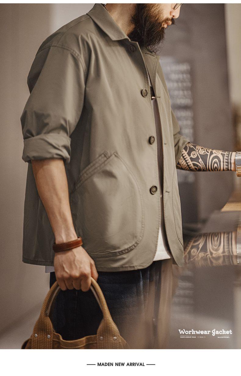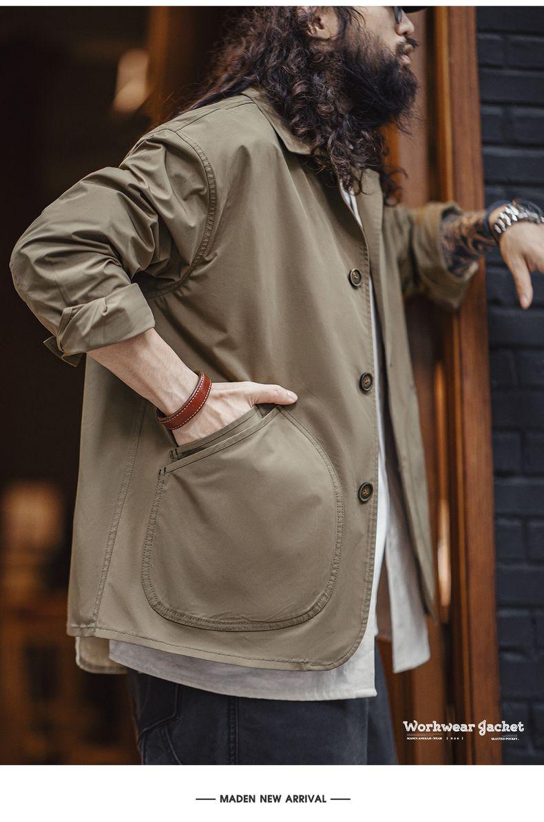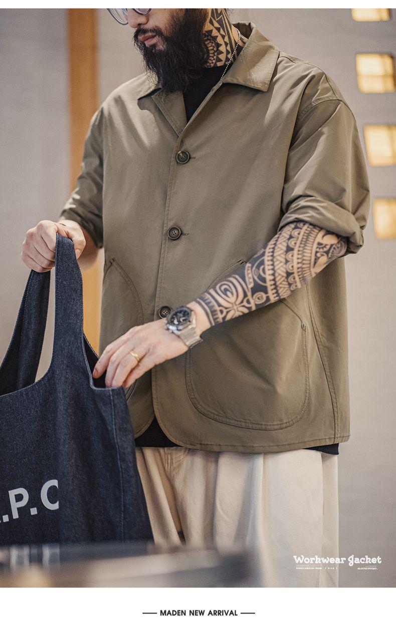 MADEN Slanted Utility Pockets Jackets Men | Relaxed Fit French Style Lightweight Casual Coat Lapel Collar #frenchworkwear
