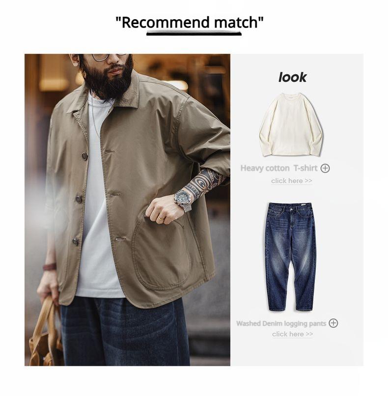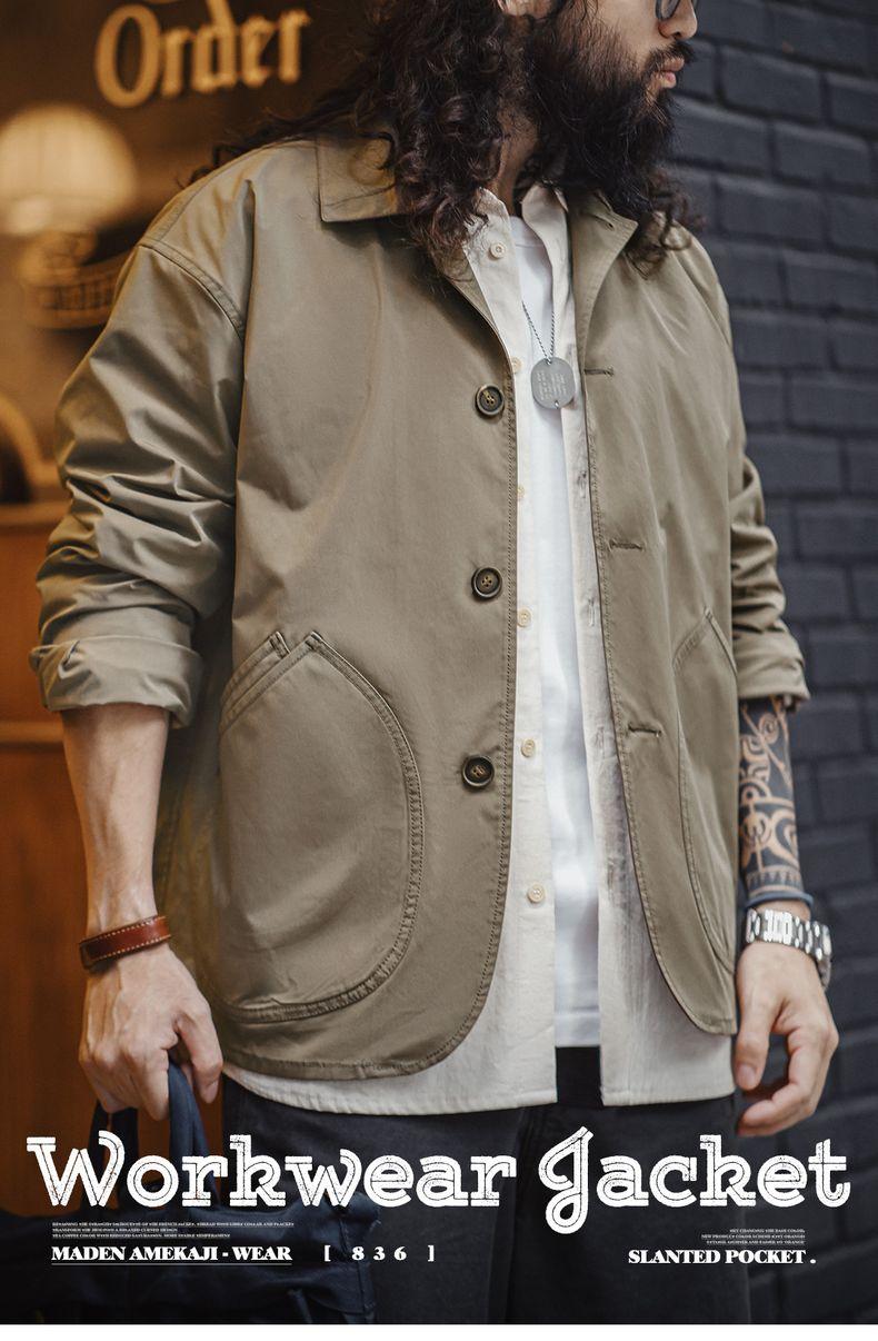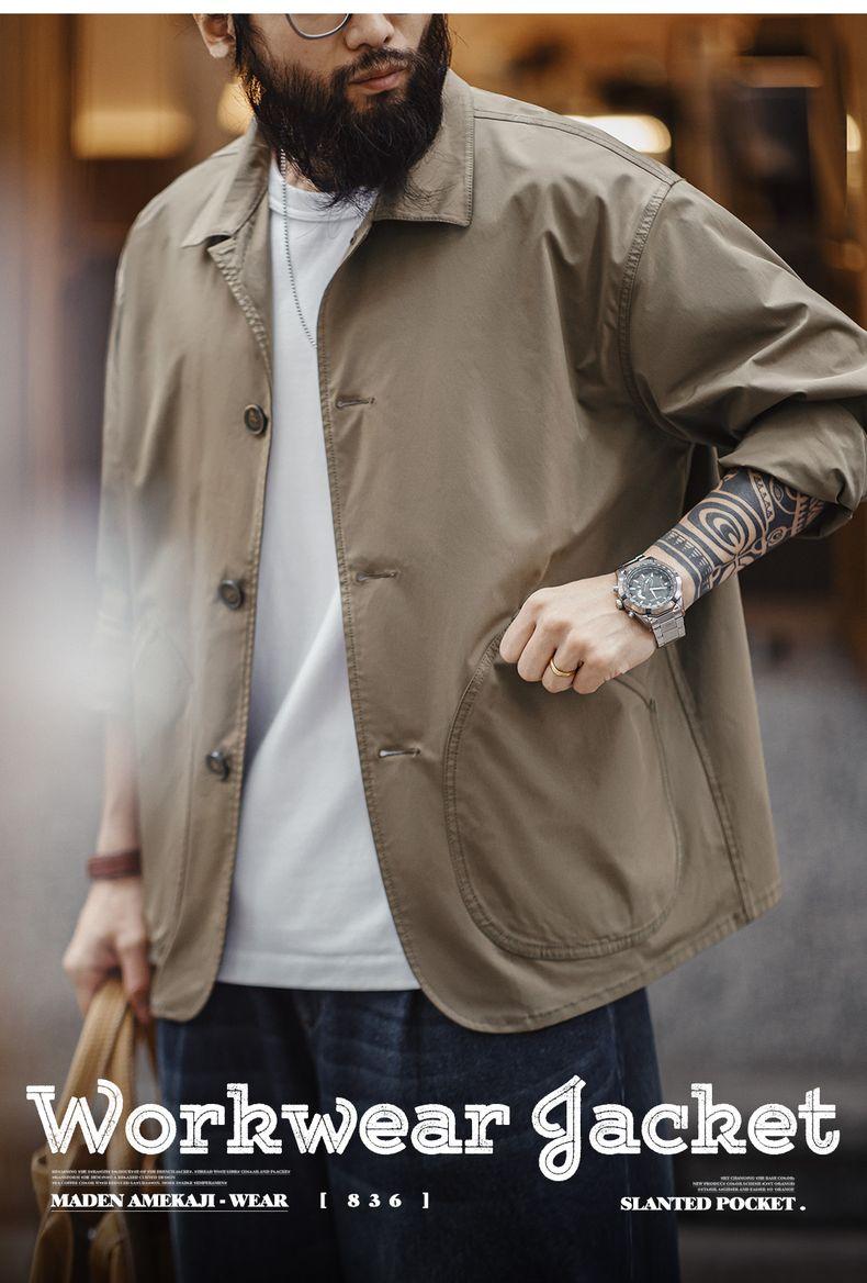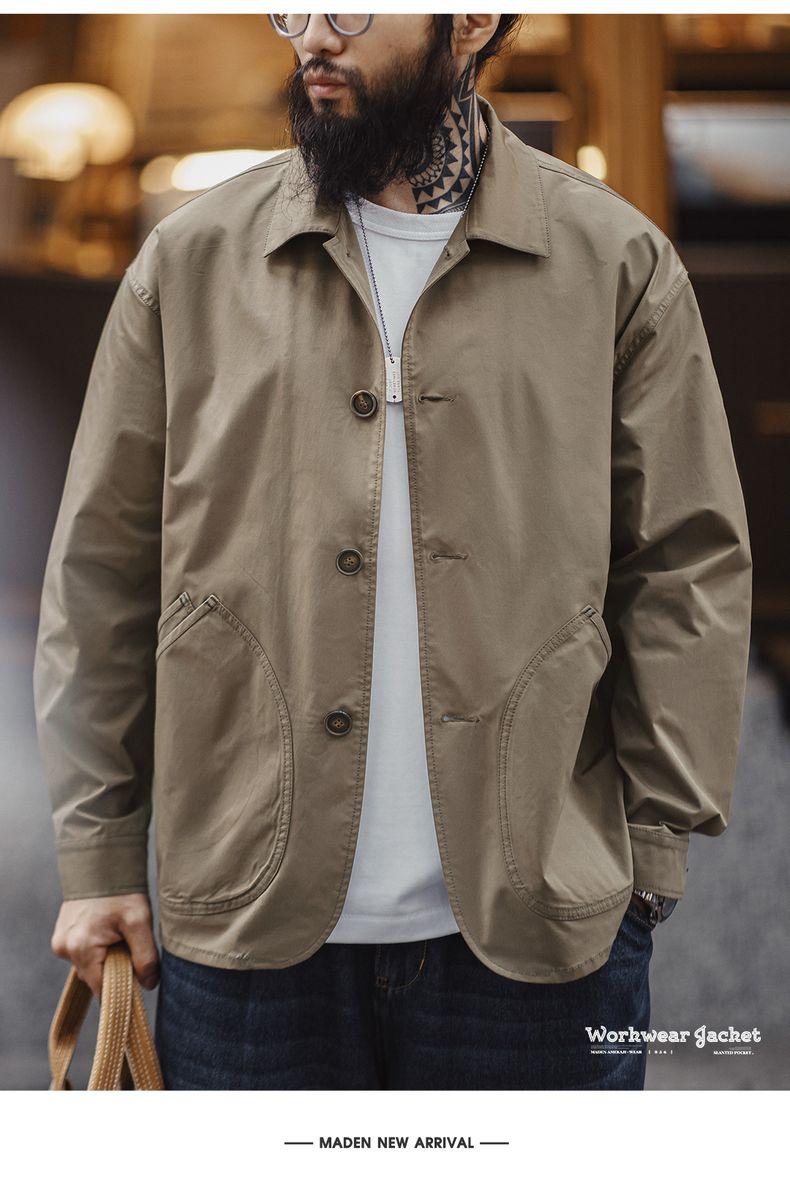 MADEN Slanted Utility Pockets Jackets Men | Relaxed Fit French Style Lightweight Casual Coat Lapel Collar #frenchworkwear