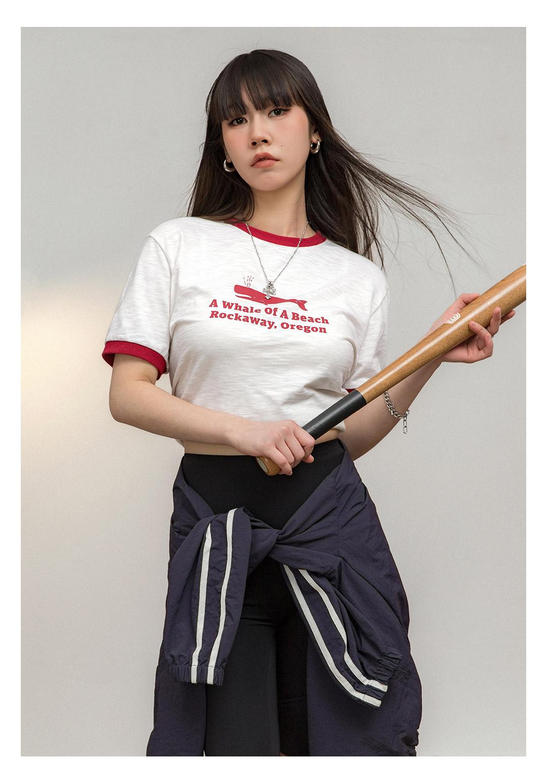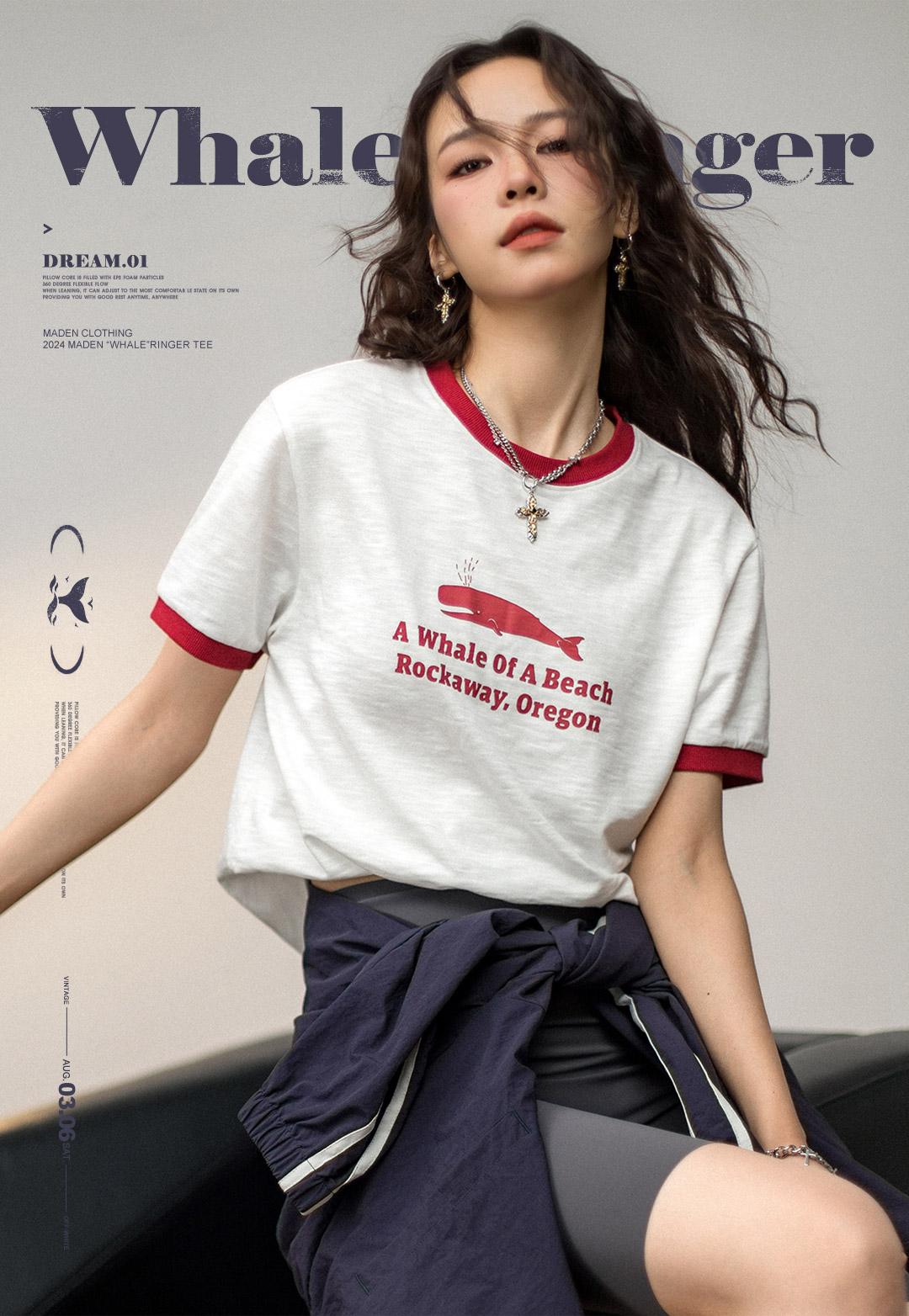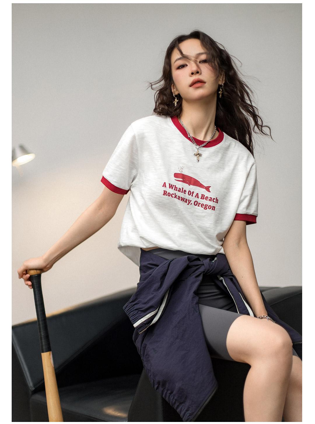 Maden Women's Casual Round Neck Contrast T-Shirt