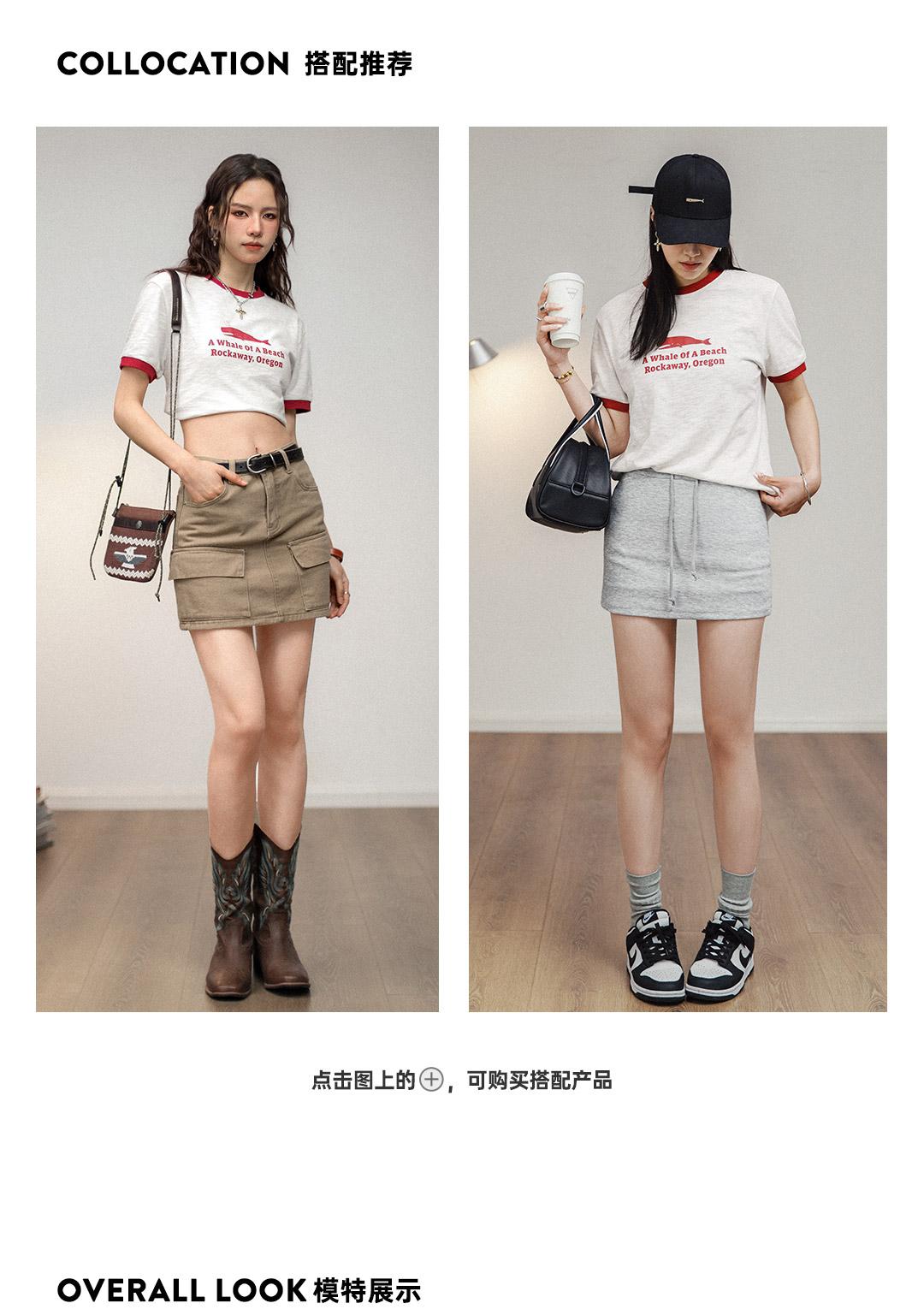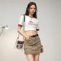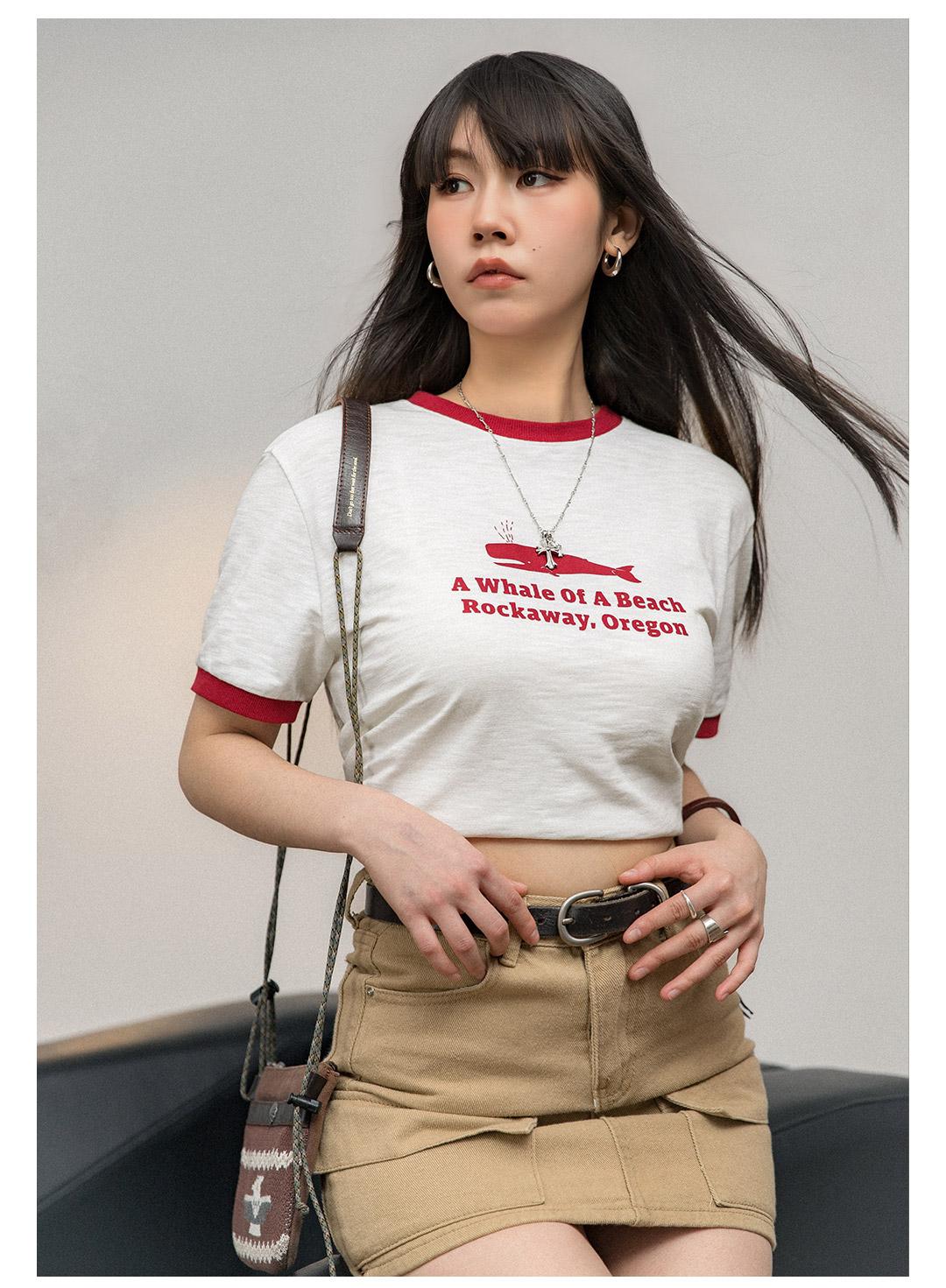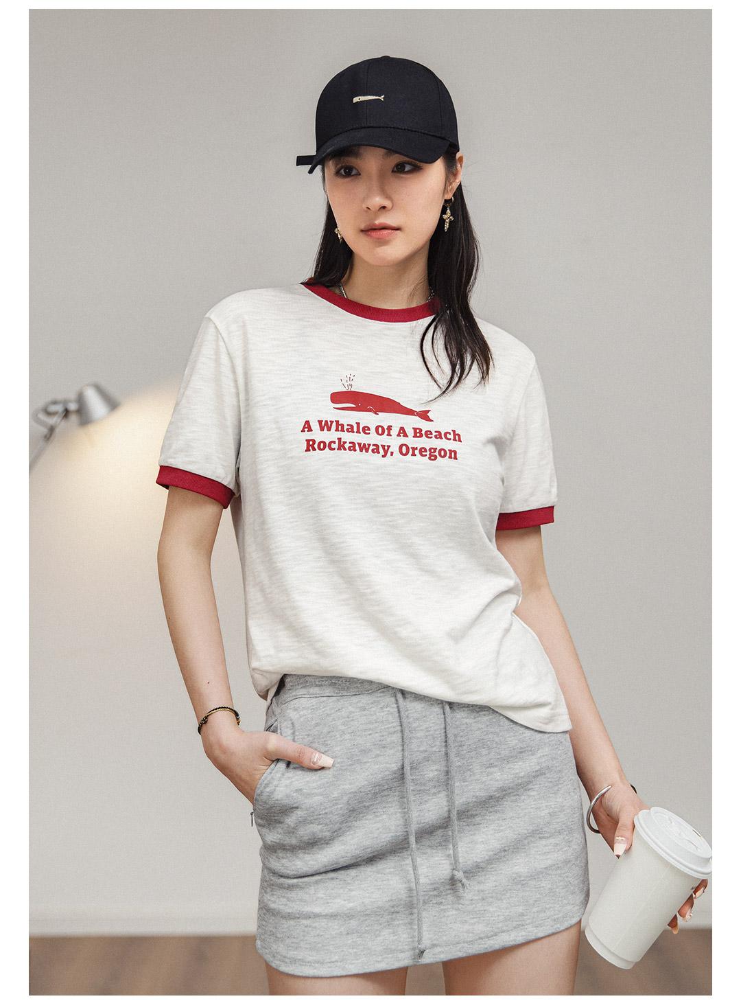 Maden Women's Casual Round Neck Contrast T-Shirt