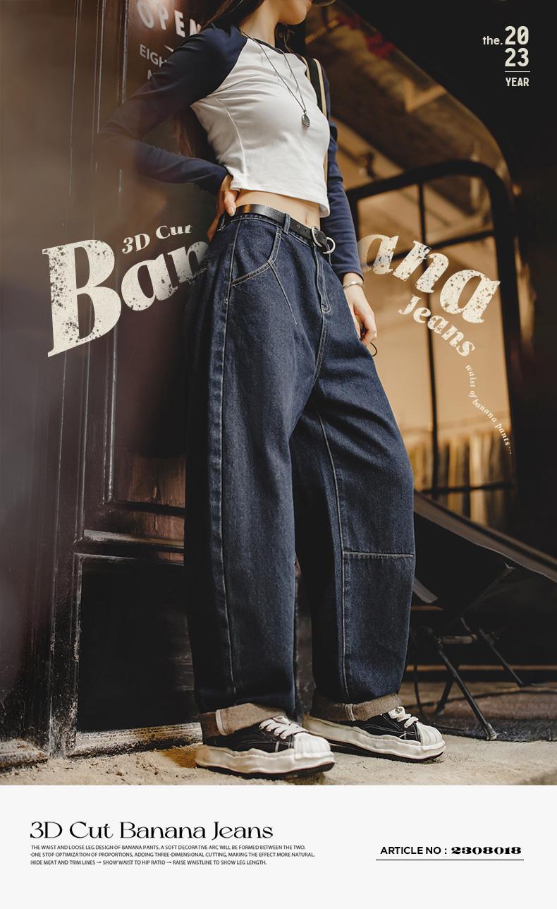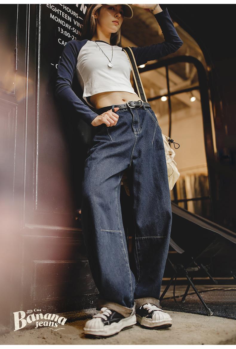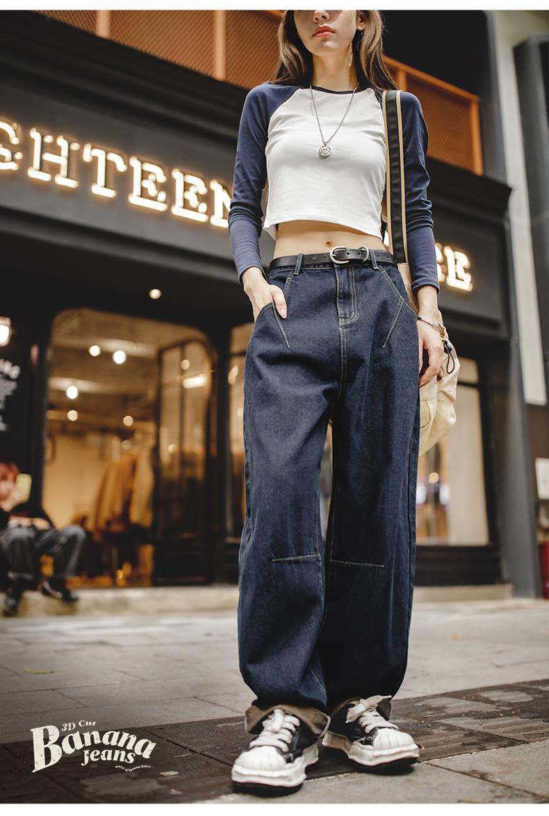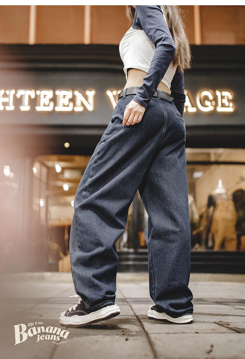 Maden 12.8OZ Washed Denim Jeans for Women 3D Cut Banana Pants Dark Blue Loose Casual Cargo Trousers Female Four Seasons Jeans