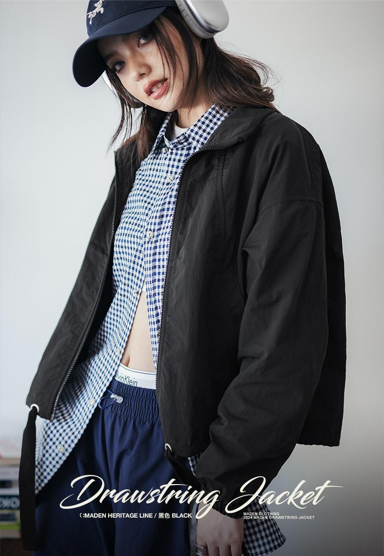 Maden Casual Jacket - Black Drawstring, Loose Fit