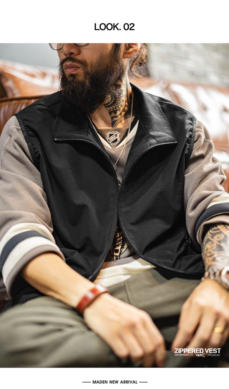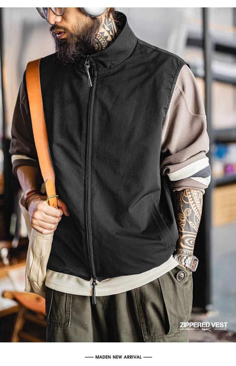 MADEN Men’s Lightweight Utility Vest Gorpcore Outdoor Techwear Gilet with Stand Collar for Layered Streetwear & Hiking