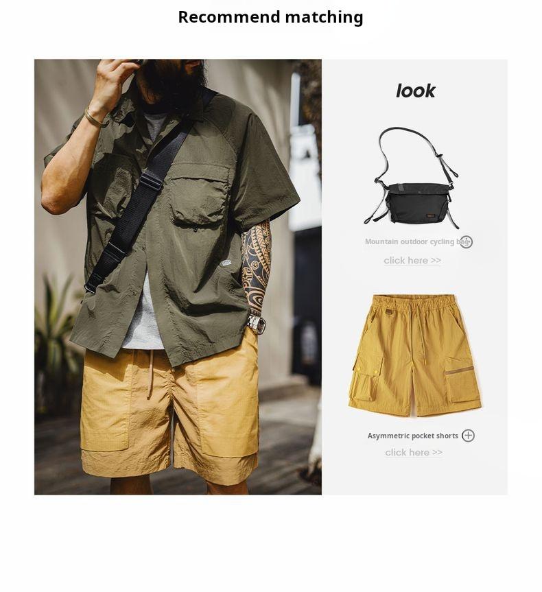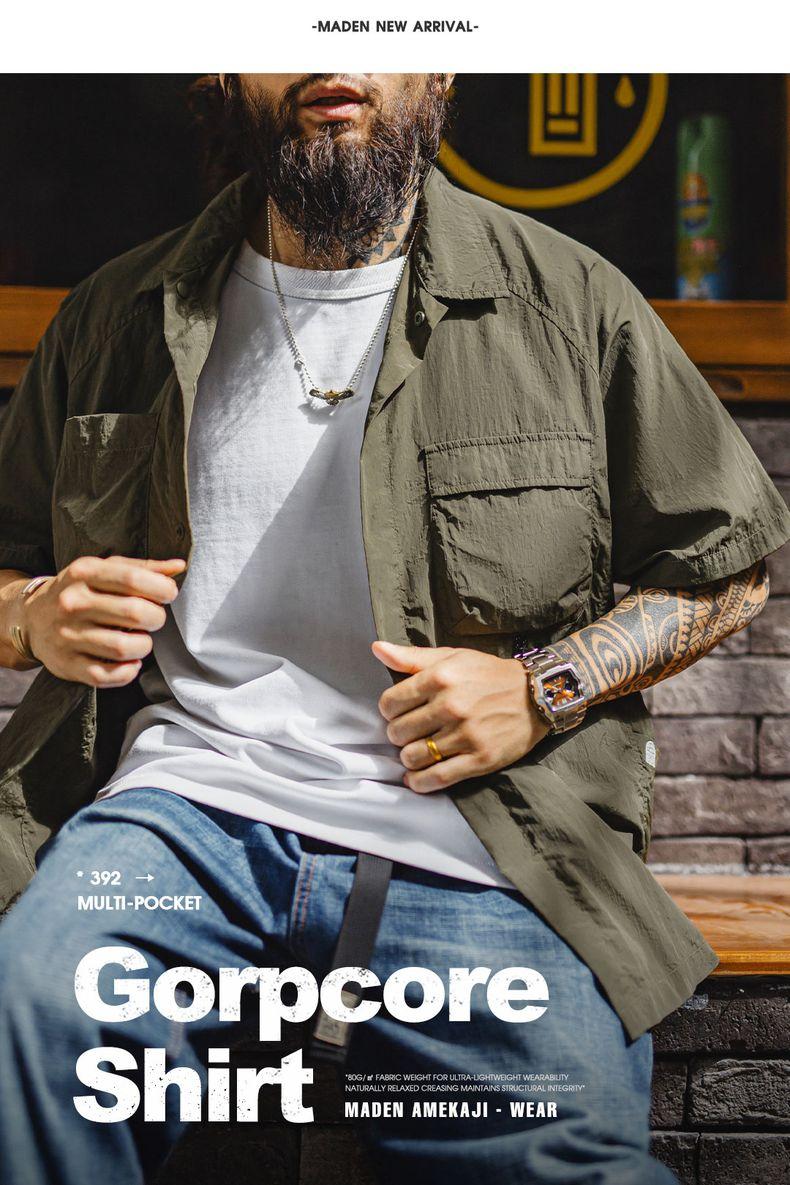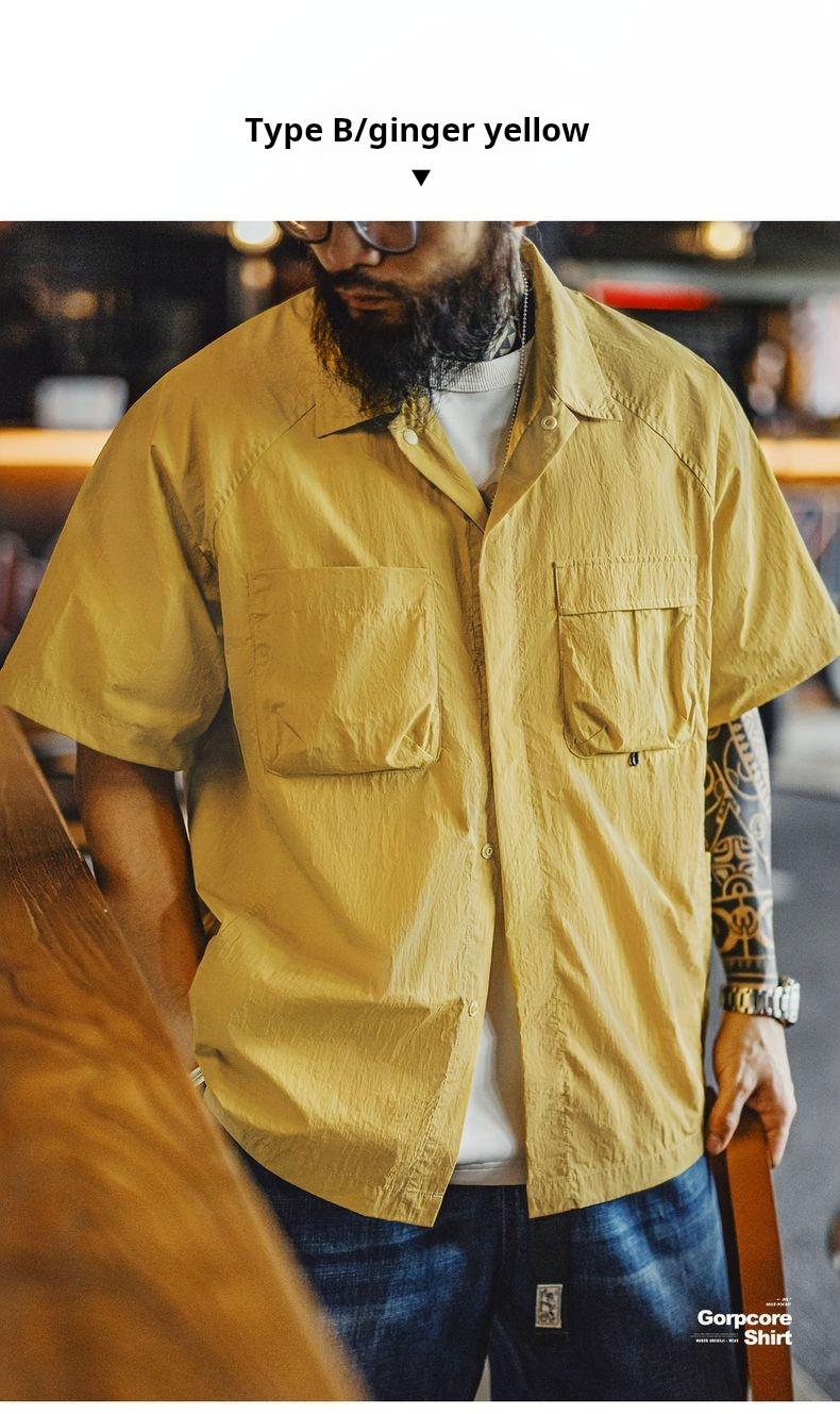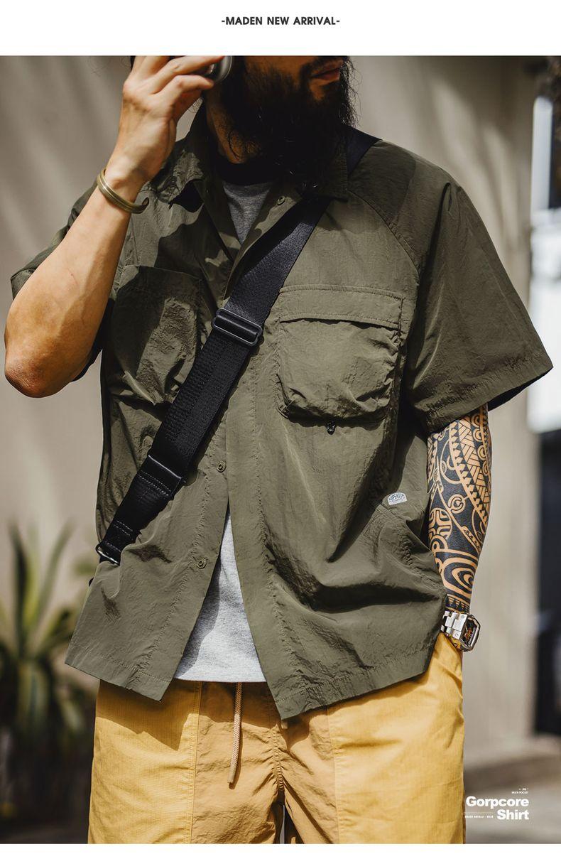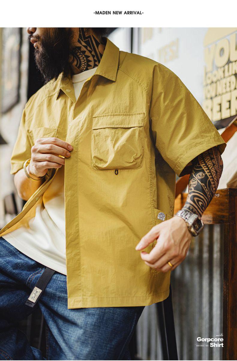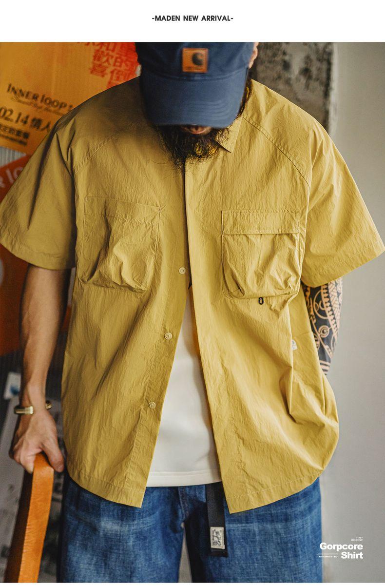 MADEN Outdoor Quick-Dry Pockets Shirt for Men Lightweight Textured Mountain-Style Short Sleeve Shirts Hiking Camping Summer 2025 Menswear