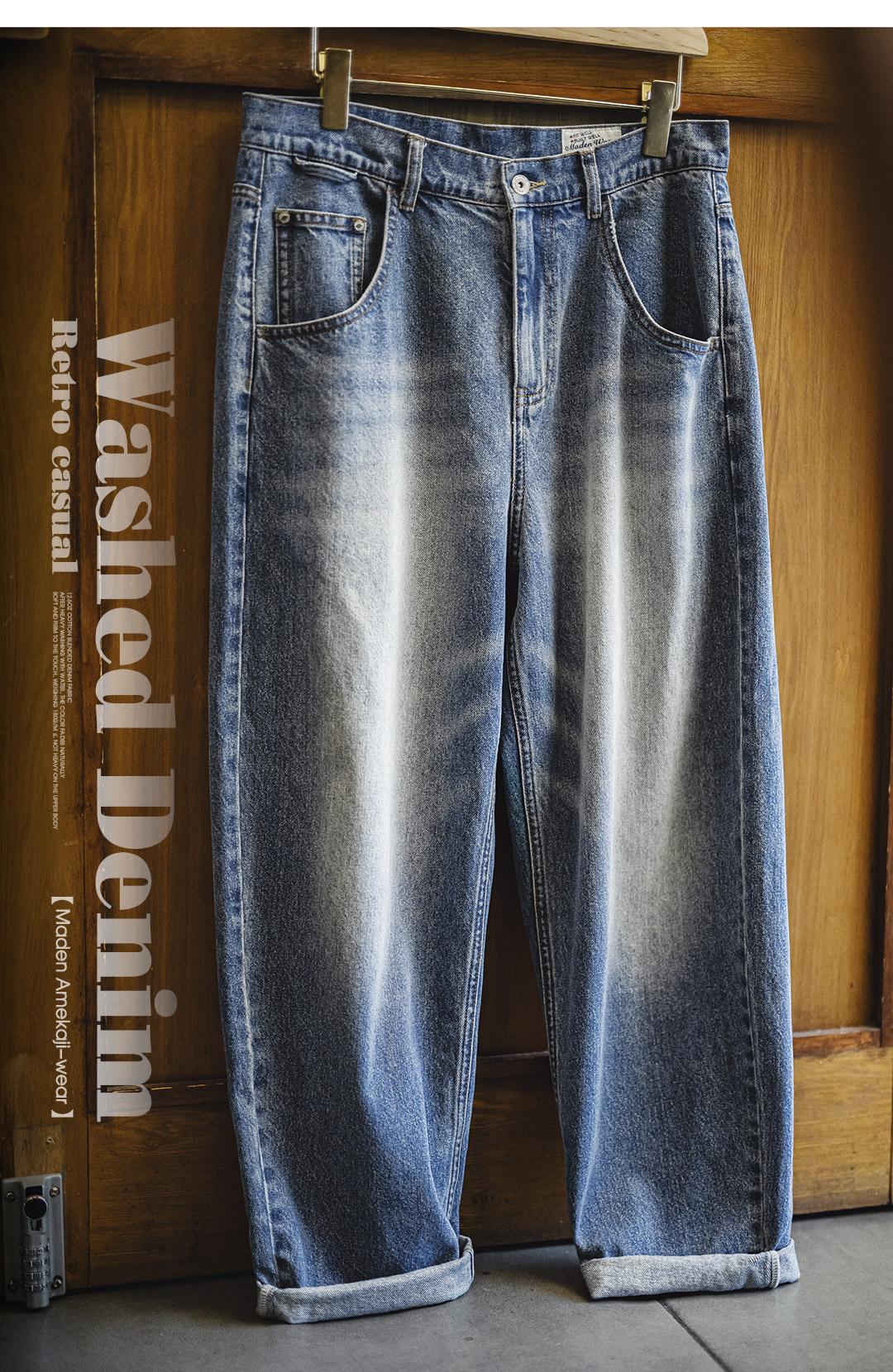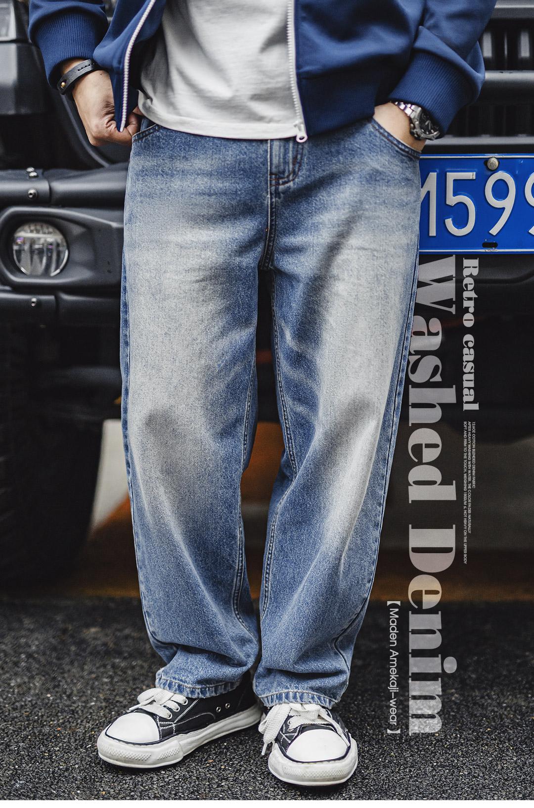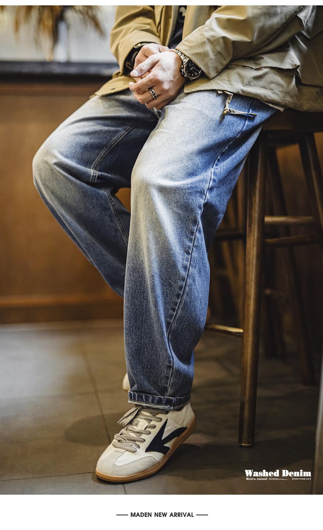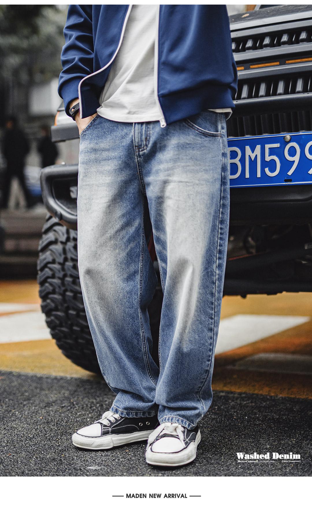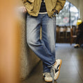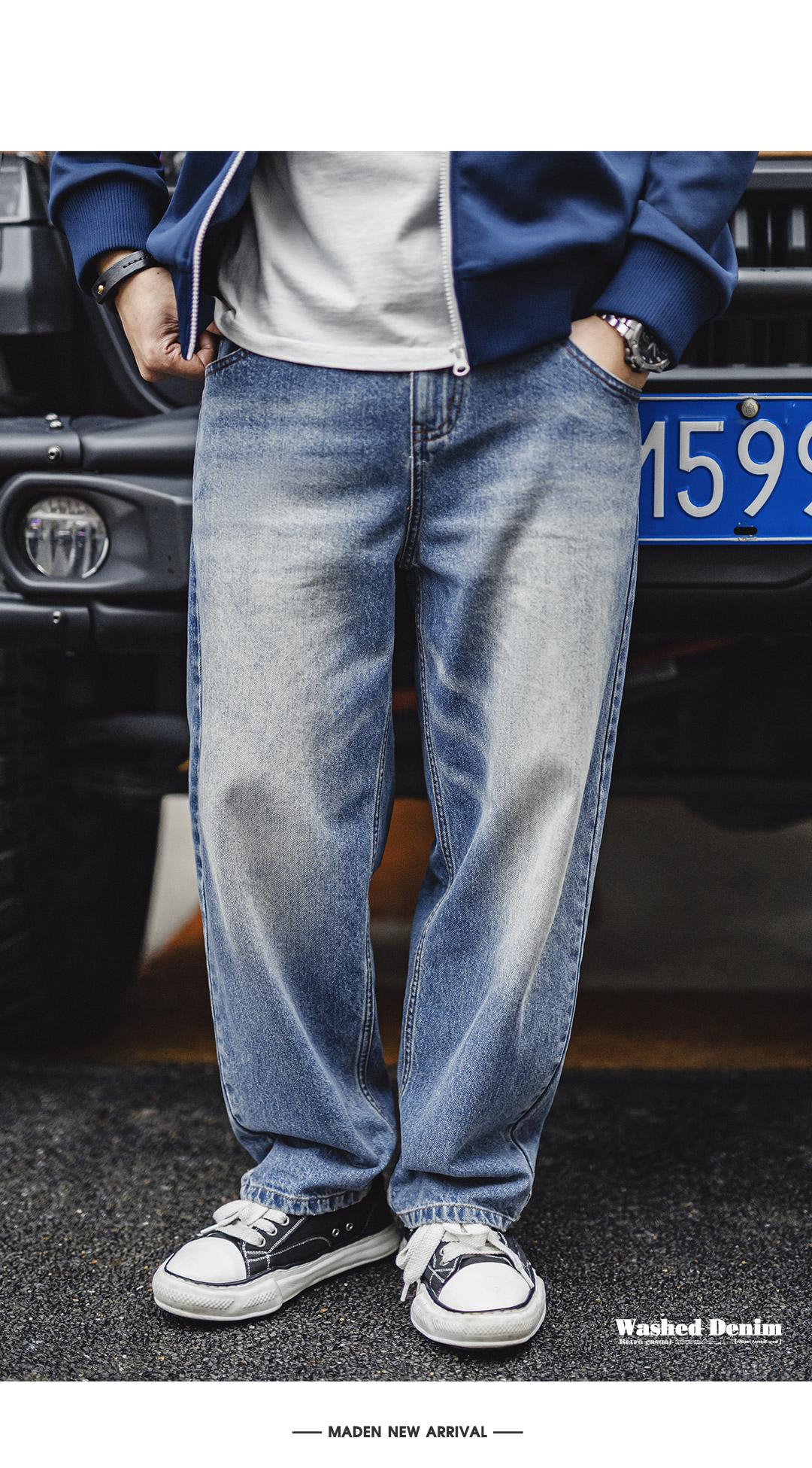 MADEN Retro Cat Whisker Faded Denim Jeans 12.6oz Relaxed Fit Straight Leg Casual Denim Pants for Men Classic Tredning Brand Design