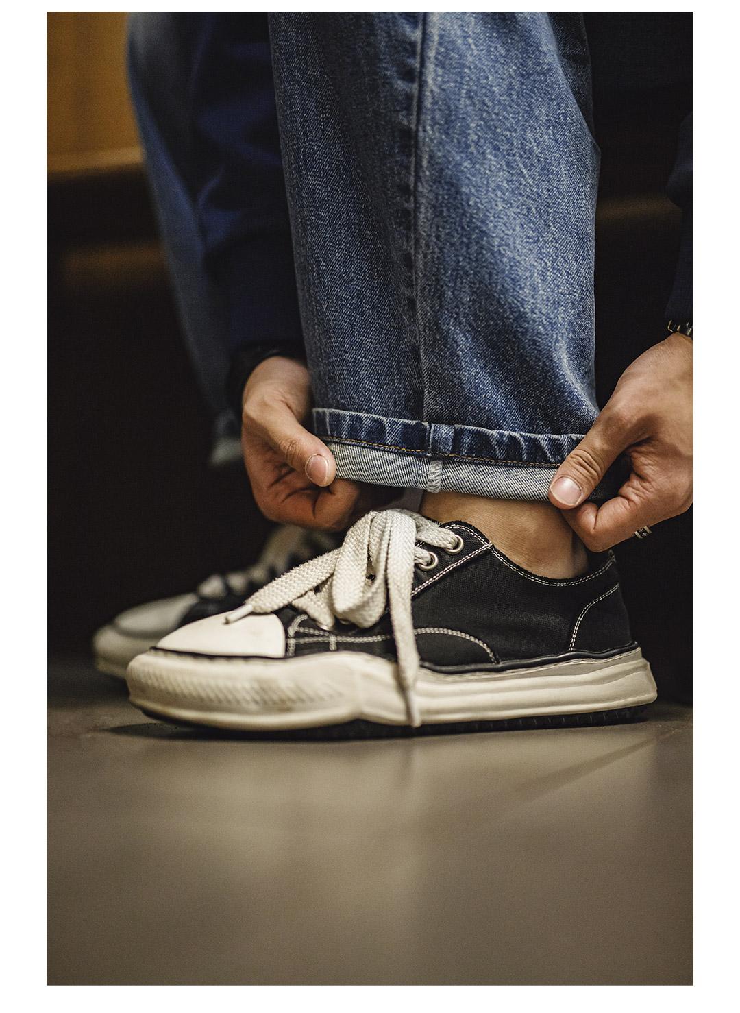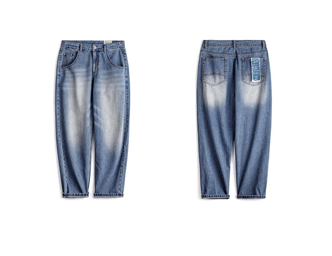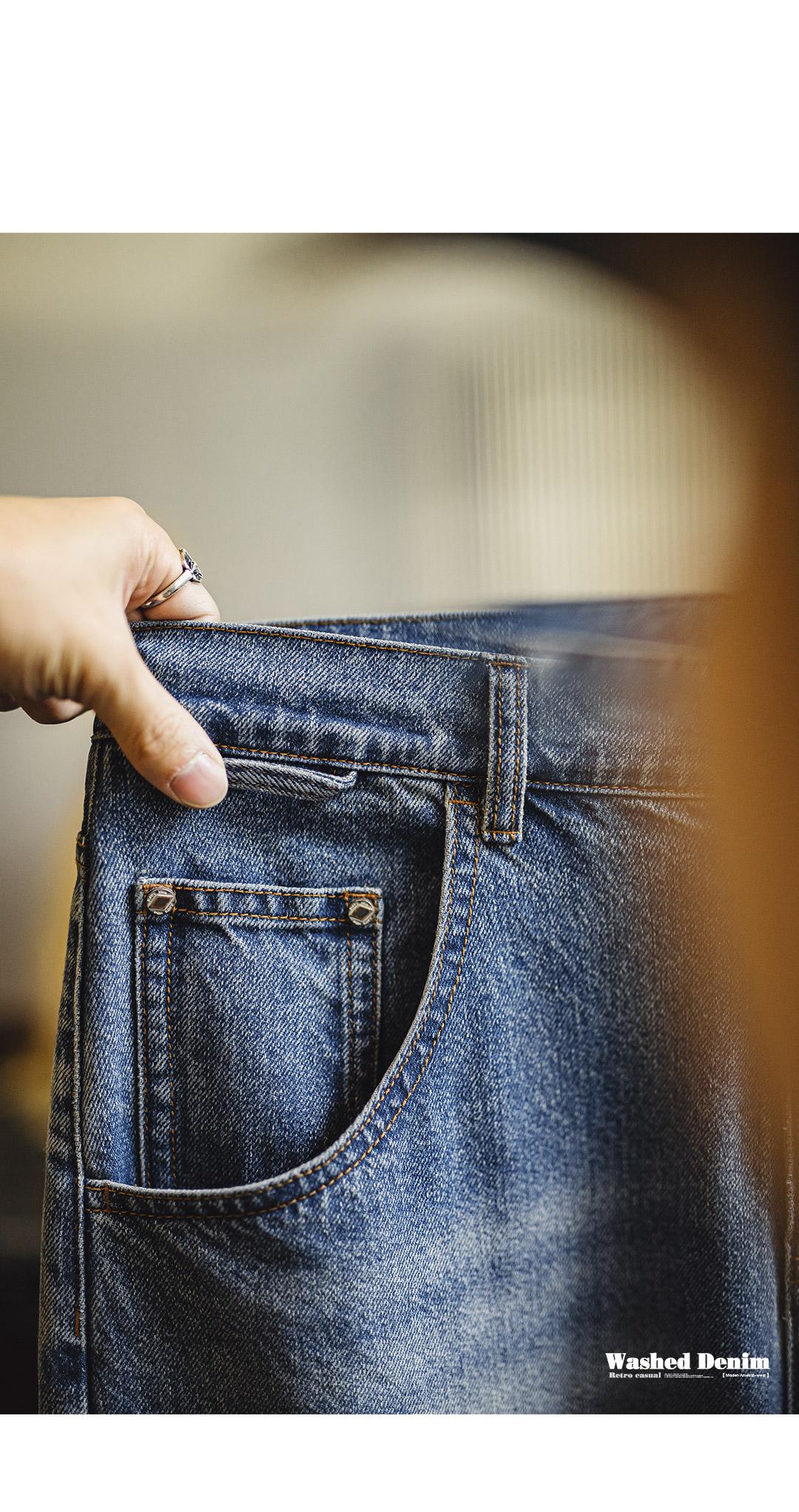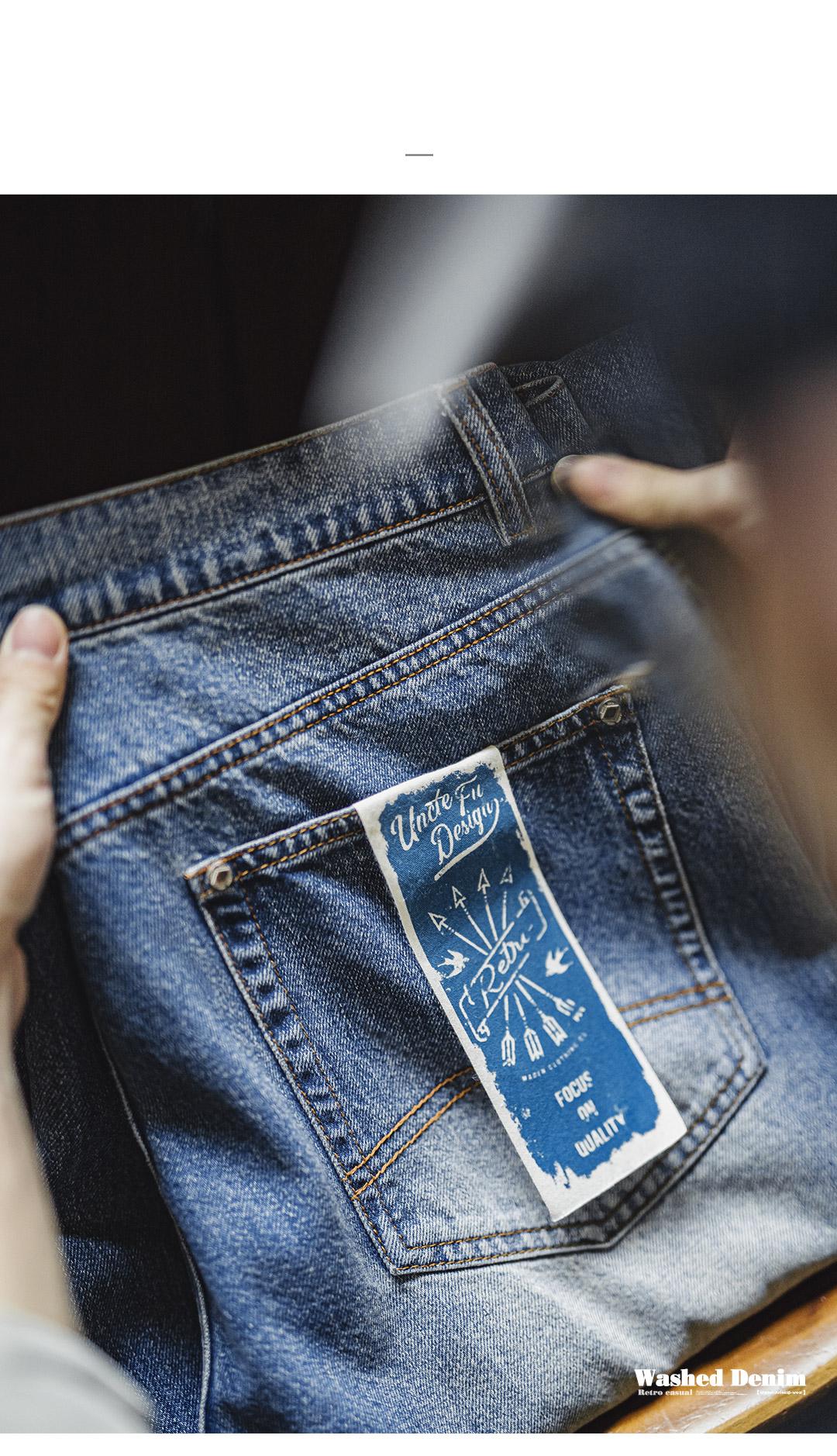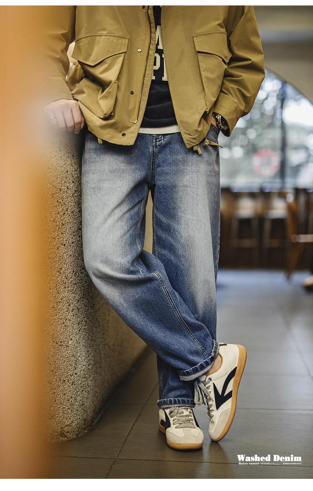 MADEN Retro Cat Whisker Faded Denim Jeans 12.6oz Relaxed Fit Straight Leg Casual Denim Pants for Men Classic Tredning Brand Design