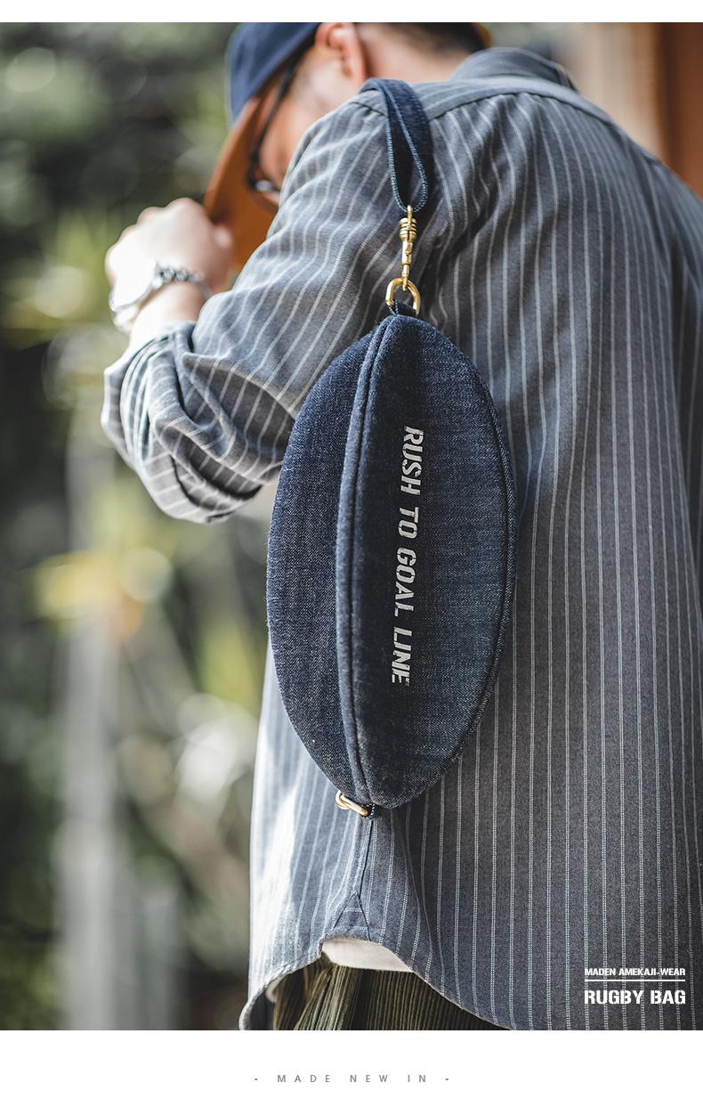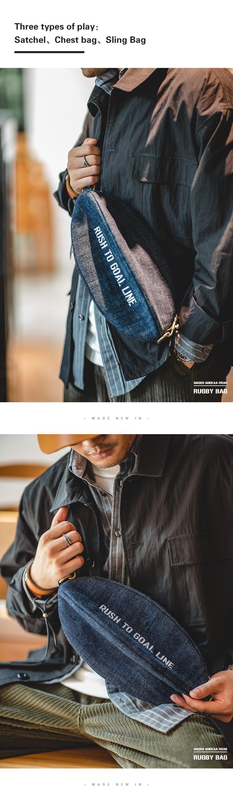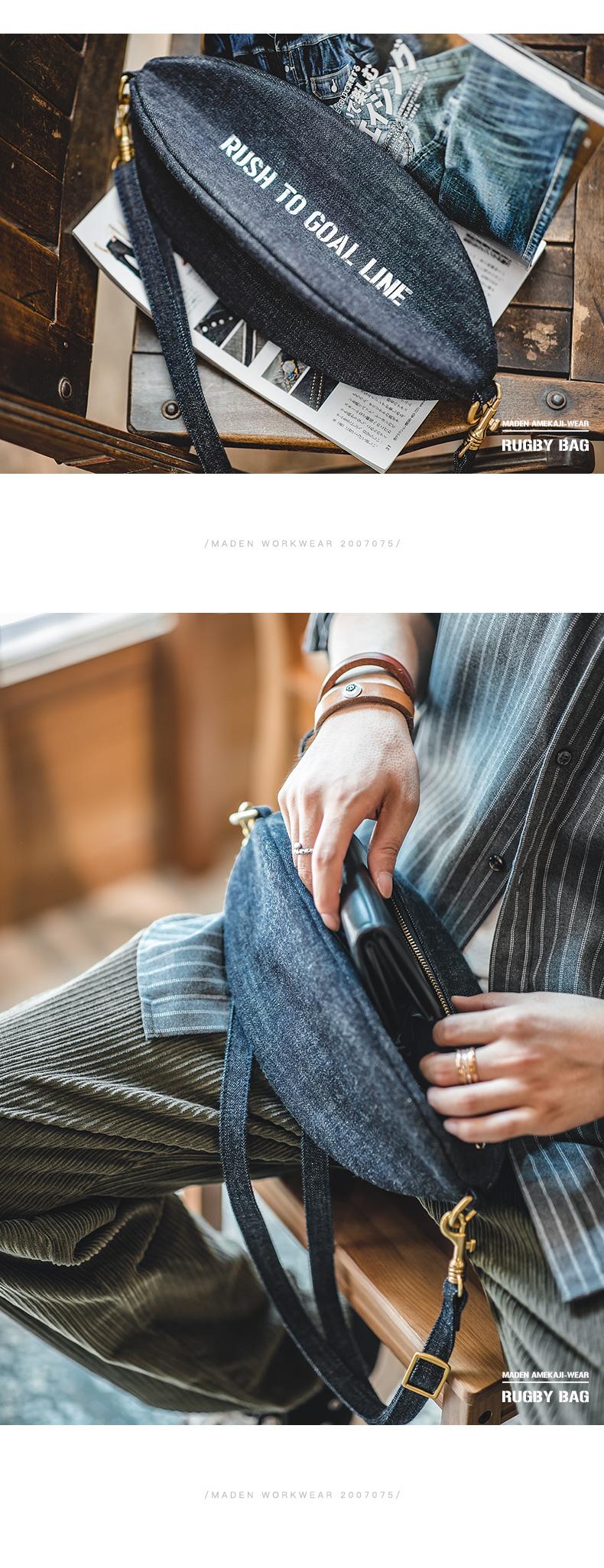 MADEN Retro Denim Shoulder Bag Unisex Letter Rugby Sling Bags Large Capacity Designer Handbags Female Crossbody Accessories