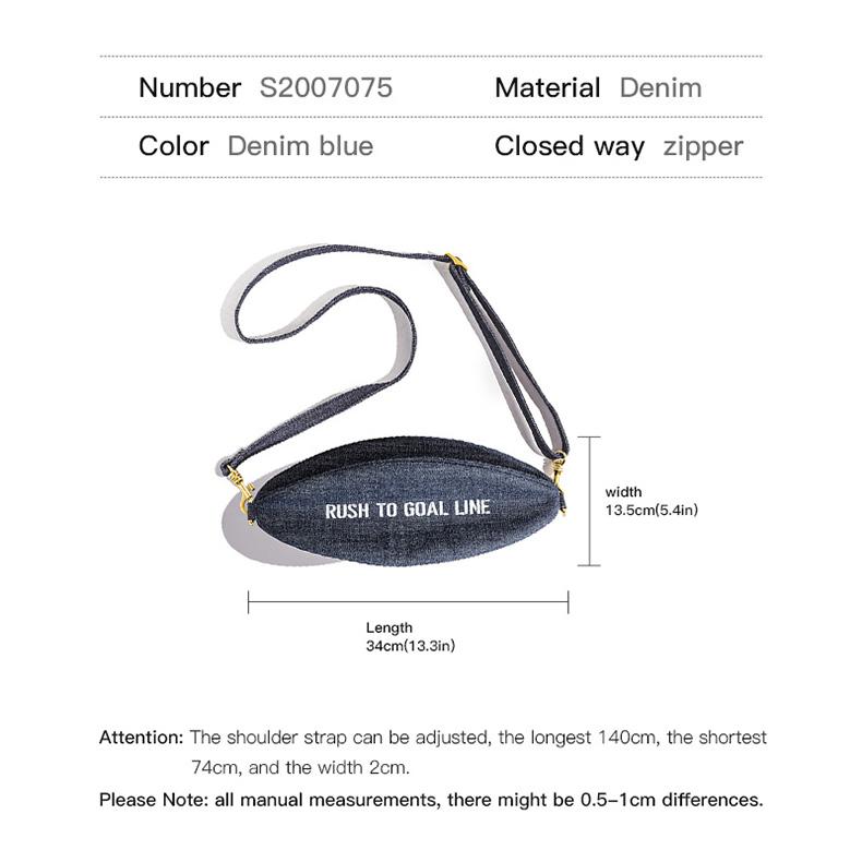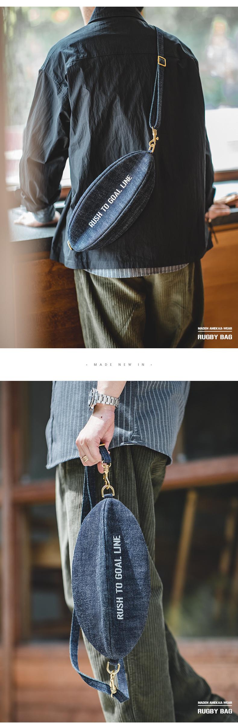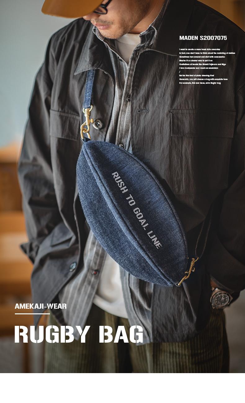 MADEN Retro Denim Shoulder Bag Unisex Letter Rugby Sling Bags Large Capacity Designer Handbags Female Crossbody Accessories