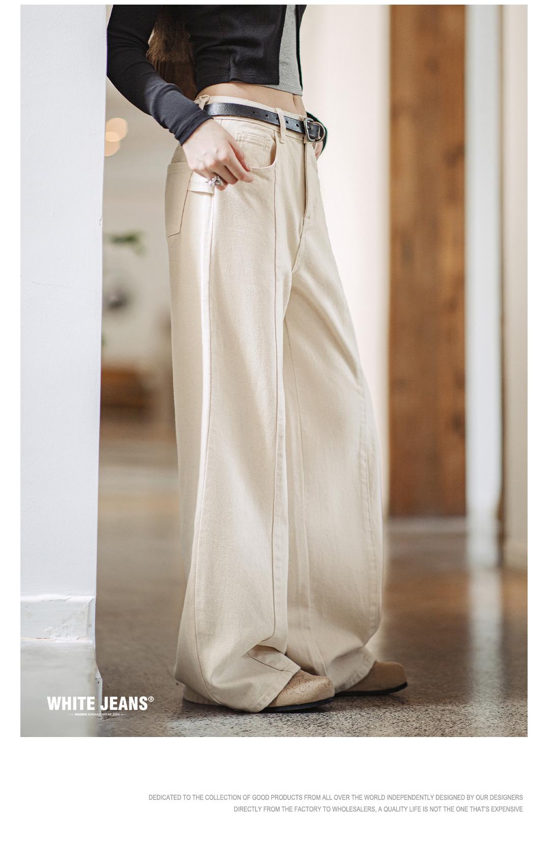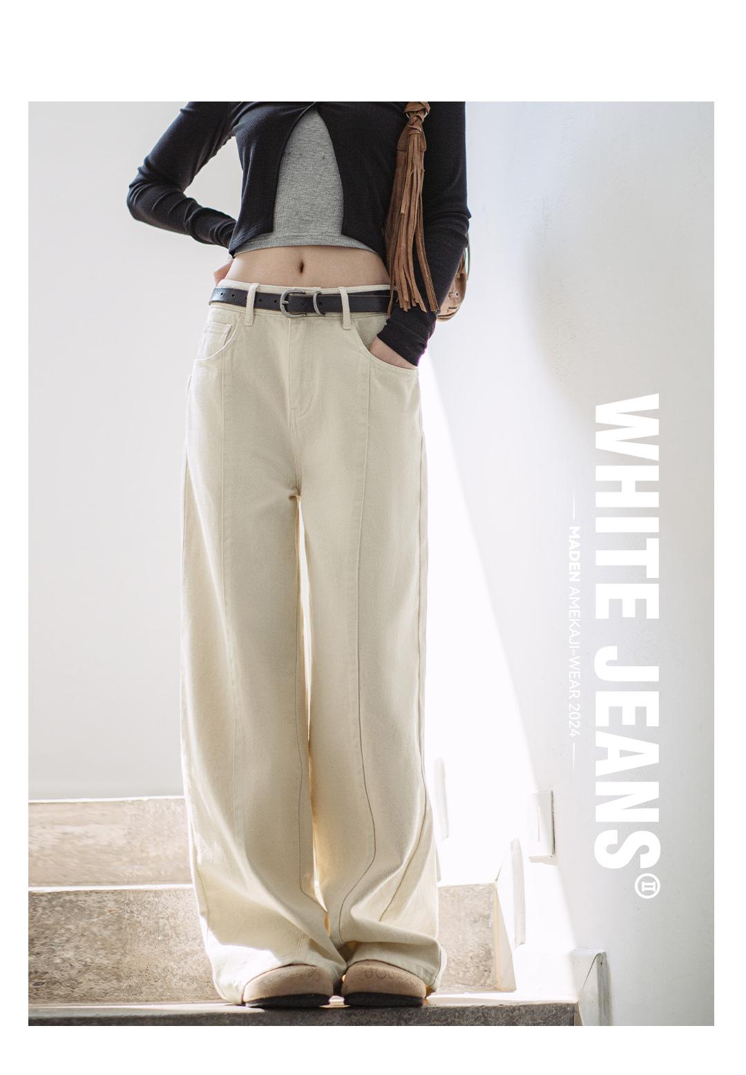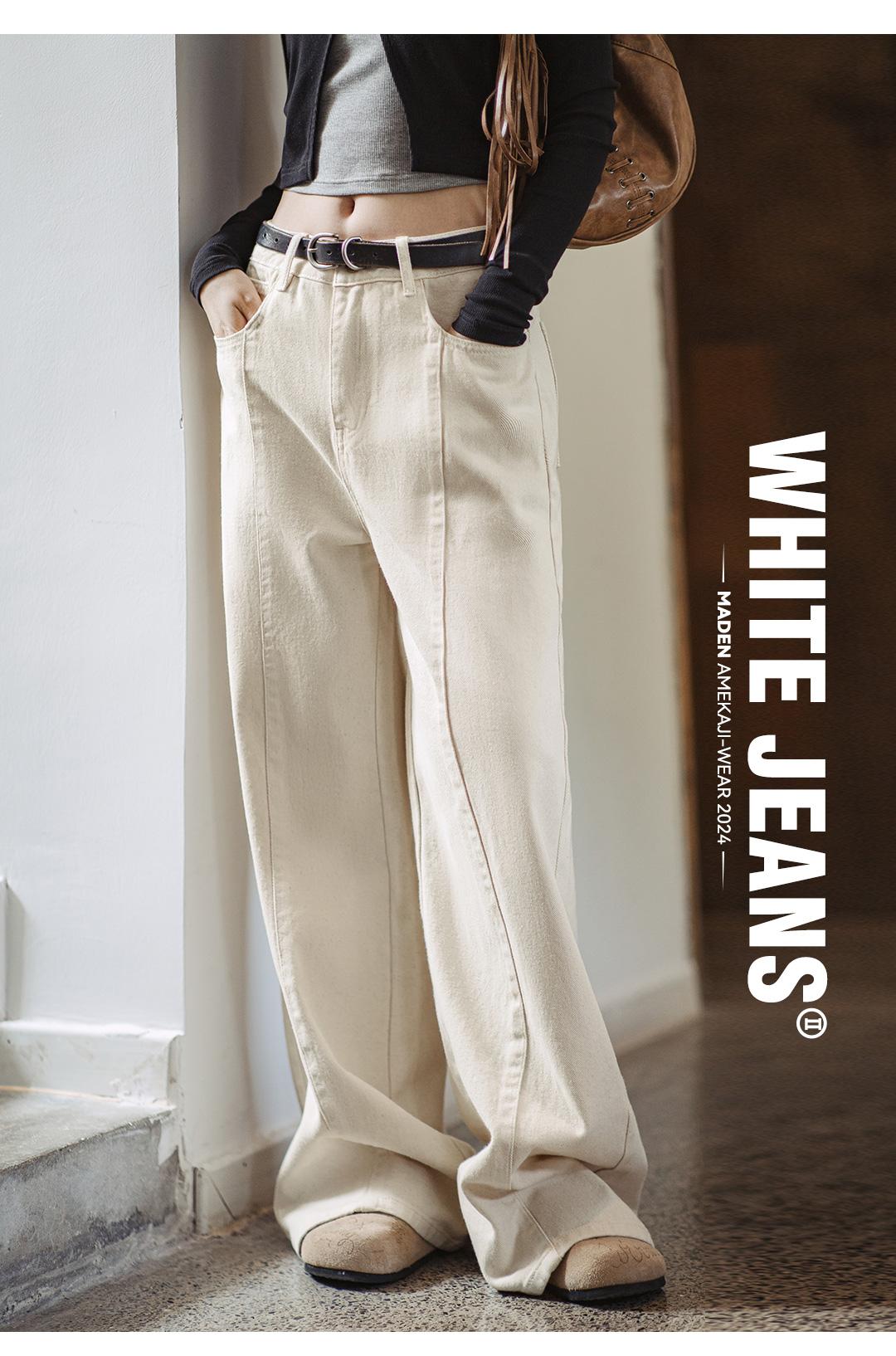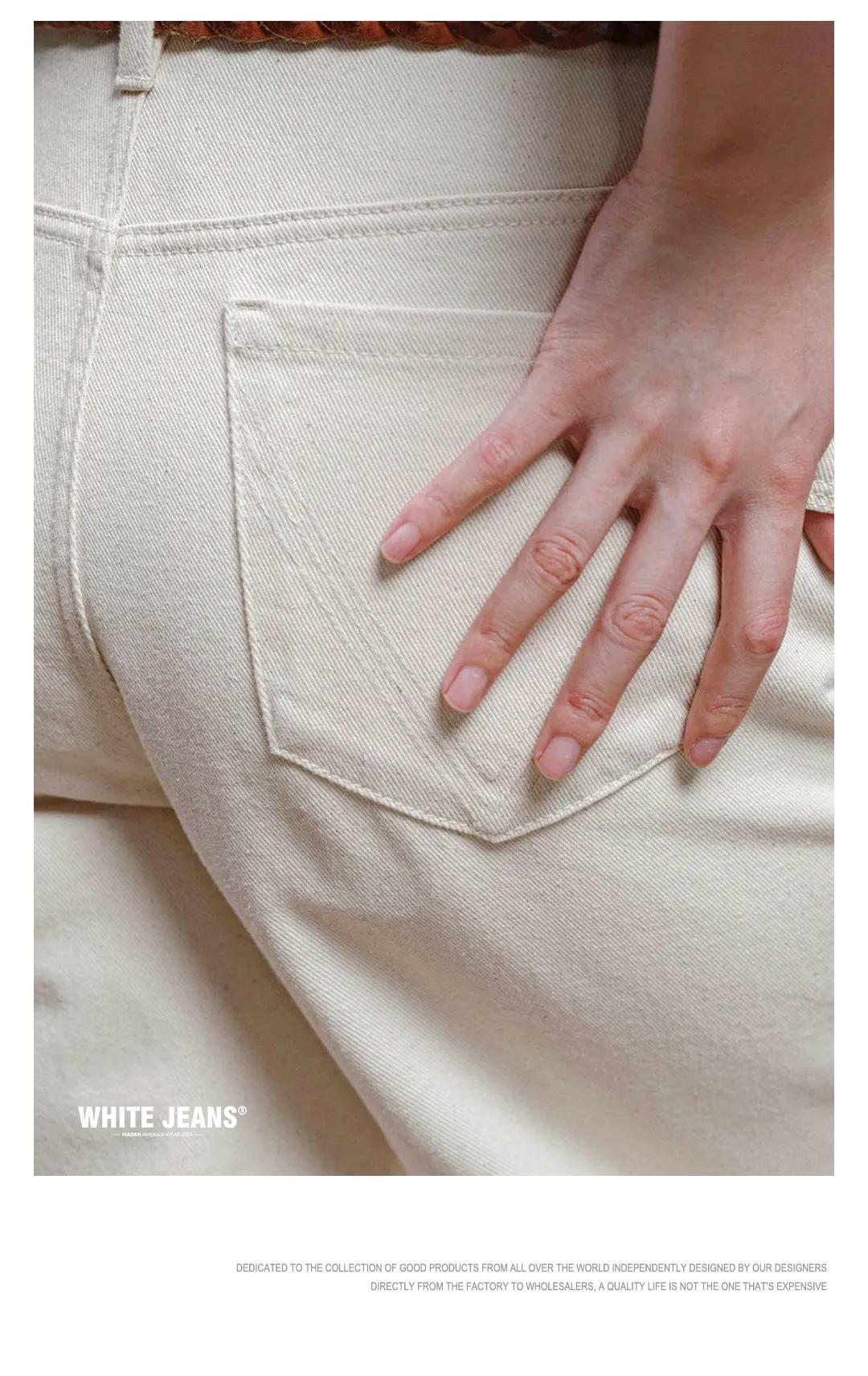 MADEN Retro White Cottonseed Straight Jeans Loose Fit Wide-Leg Casual Pants with Pockets Trousers for Women's Spring And Autumn