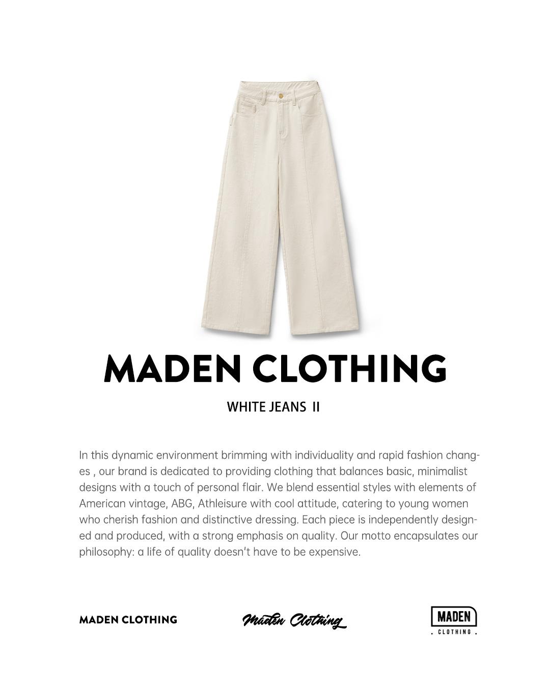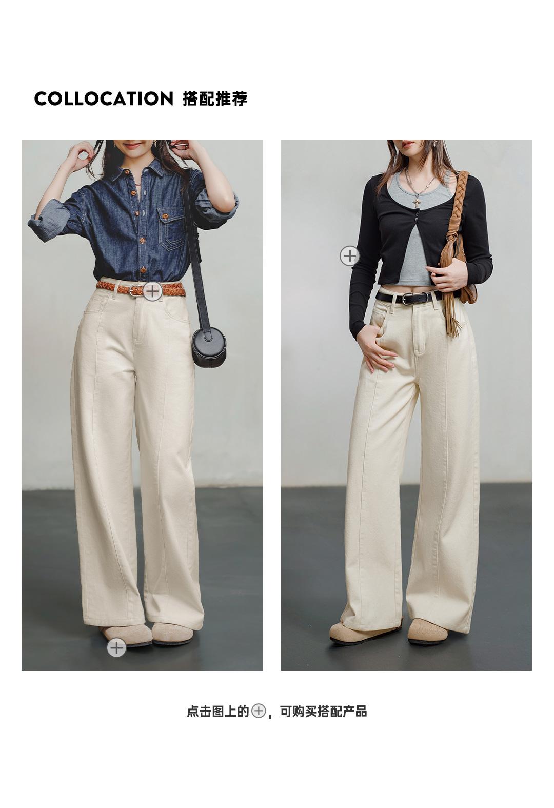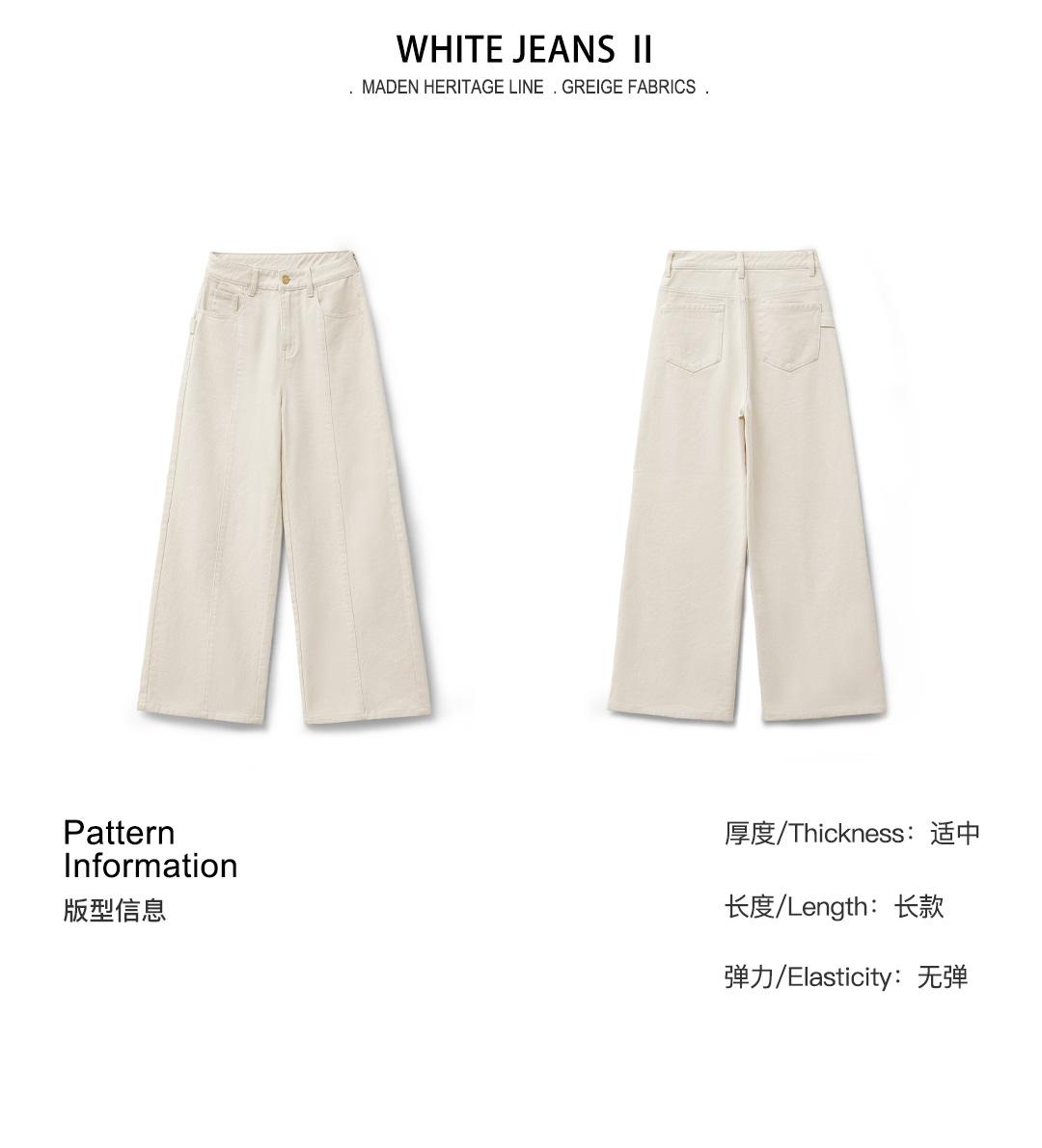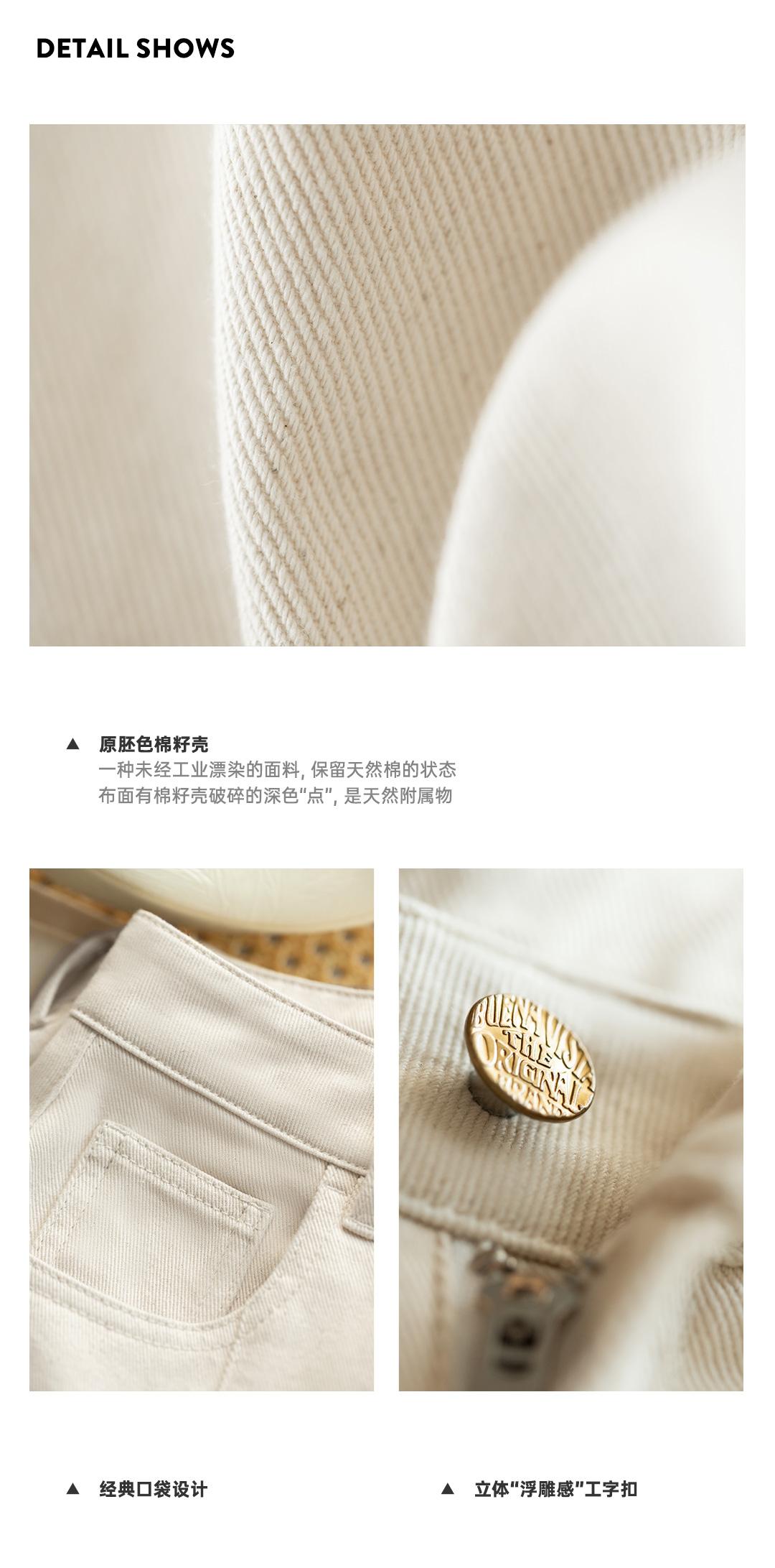 MADEN Retro White Cottonseed Straight Jeans Loose Fit Wide-Leg Casual Pants with Pockets Trousers for Women's Spring And Autumn