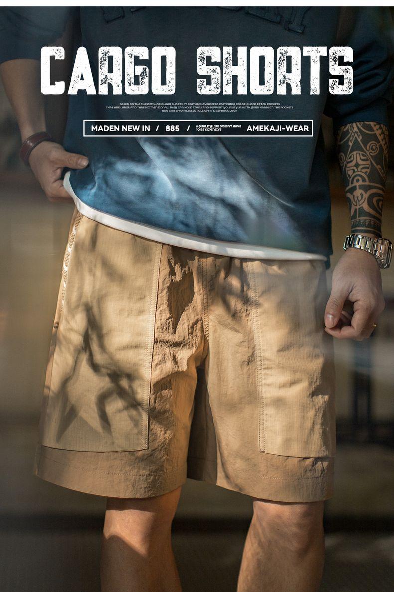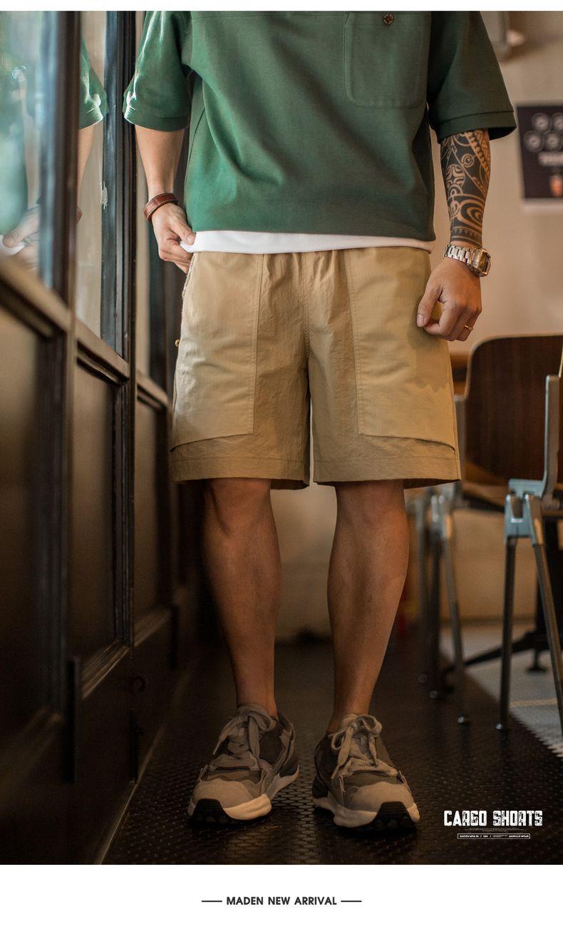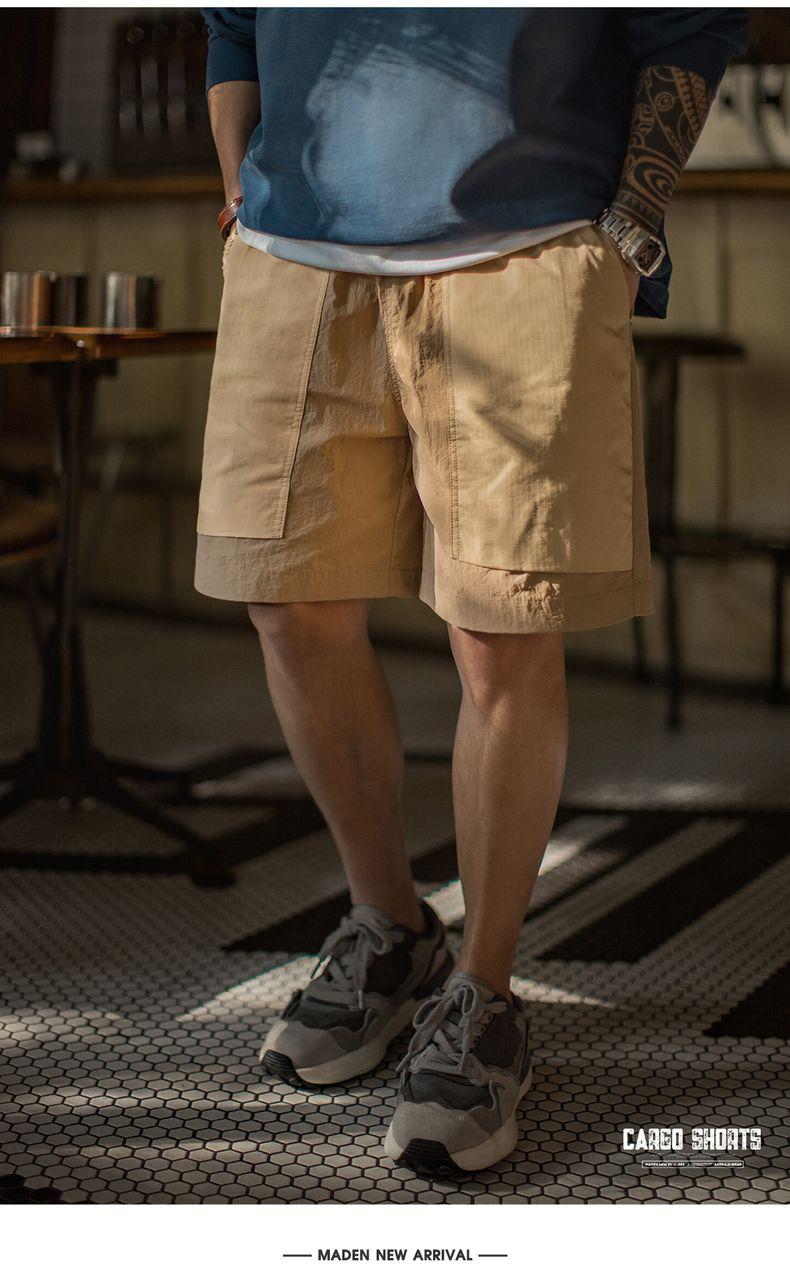 Quần đùi ngoài trời mau khô màu kaki MADEN - Quần Bermuda nam mùa hè nhiều túi, vải dệt, ống thẳng, nhẹ dùng đi biển