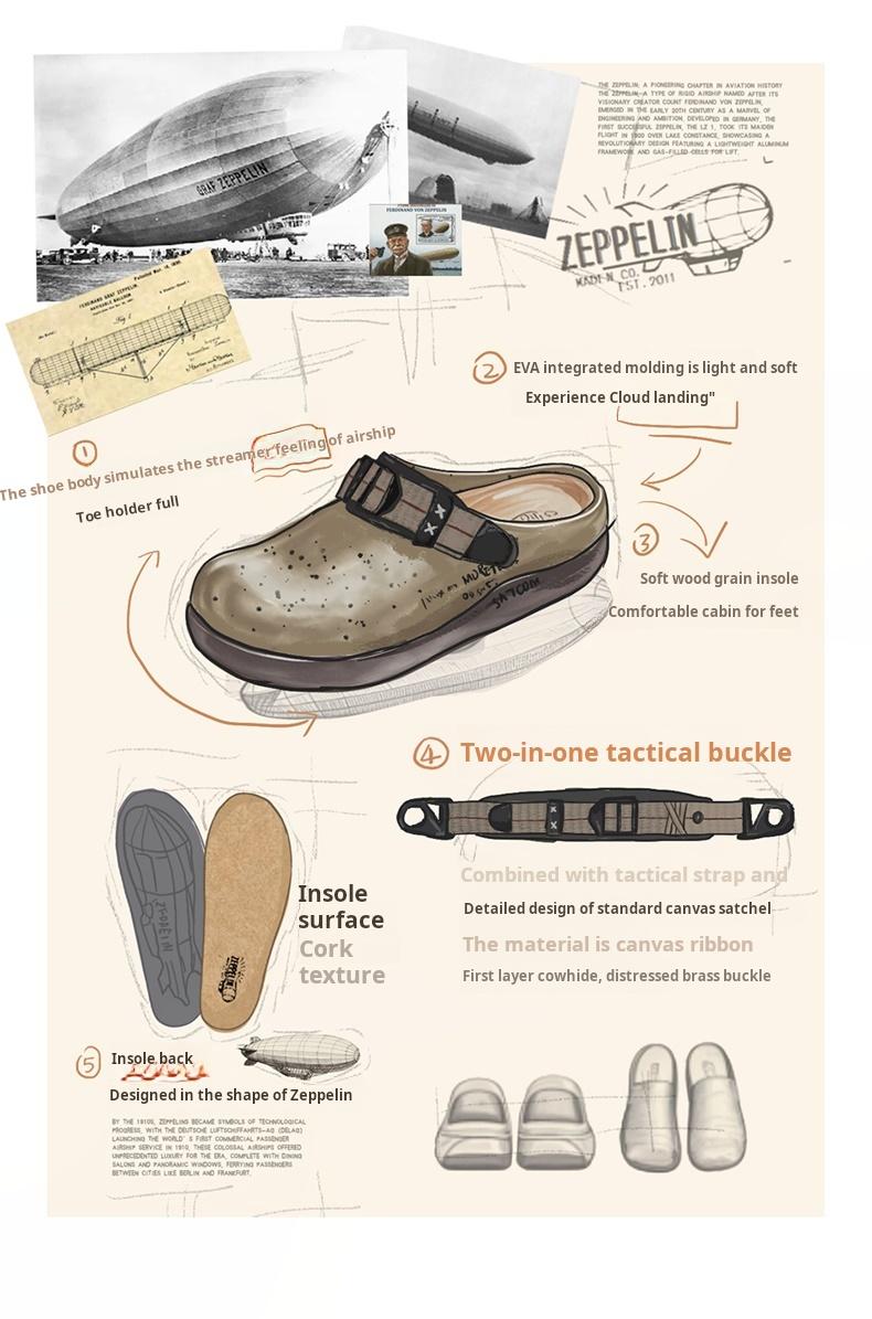 Dép guốc MADEN 'Zeppelin' | Dép lê thường ngày nam đi ngoài trời bãi biển đế cao nửa kín giày mùa hè