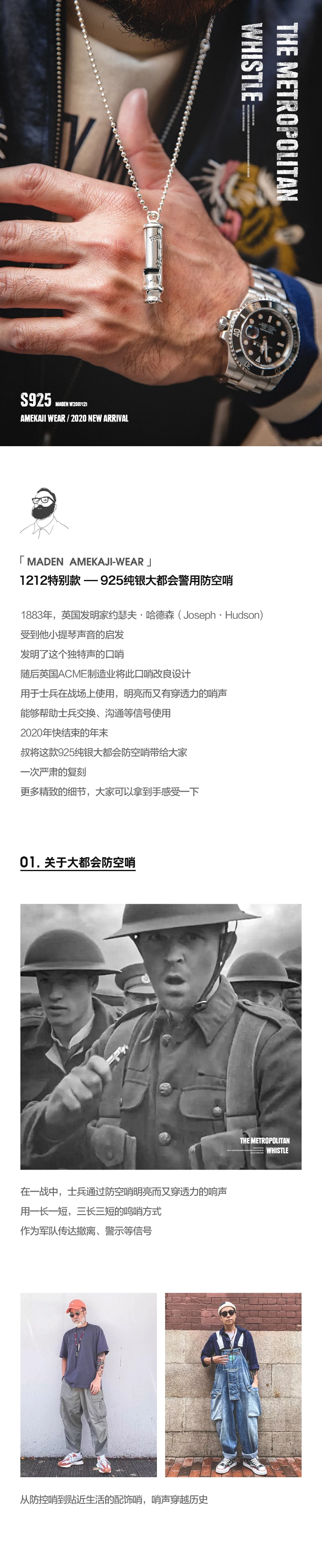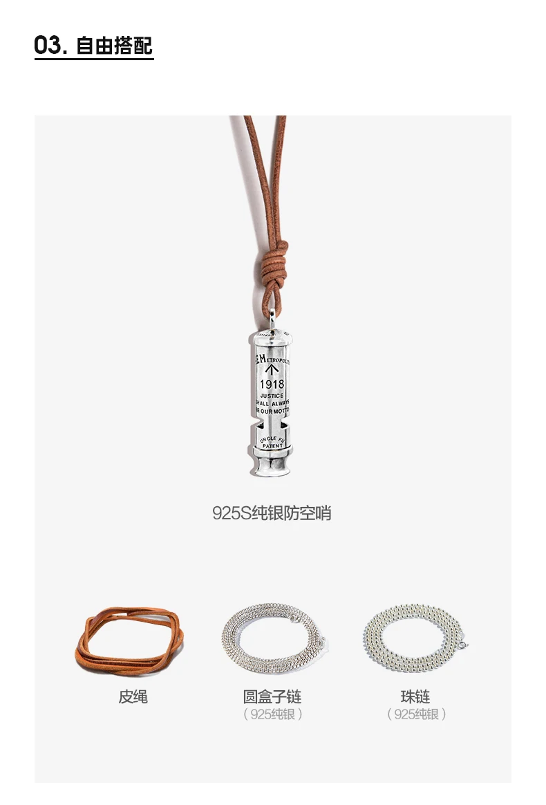 Dây chuyền mặt dây chuyền còi sét bạc 925 MADEN – Dây đeo áo len cho nam nữ (Tặng kèm dây da miễn phí)