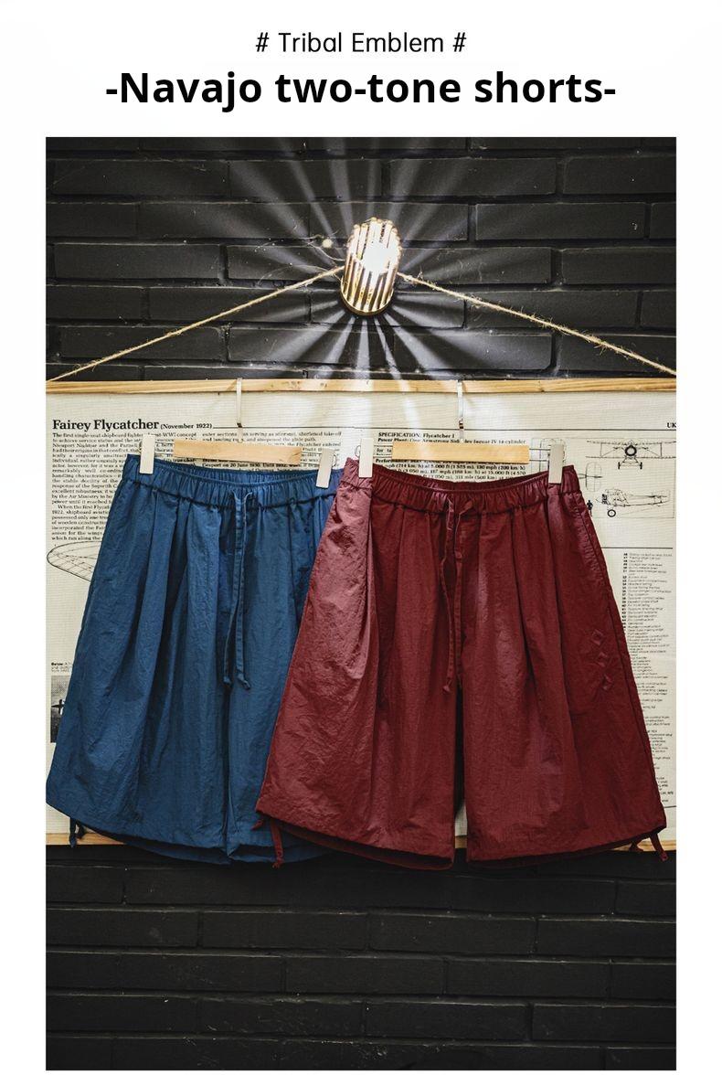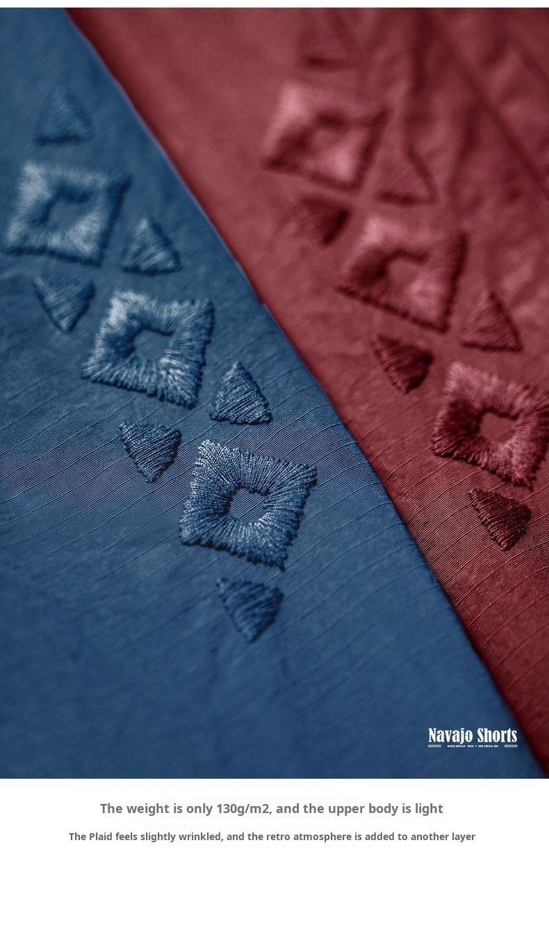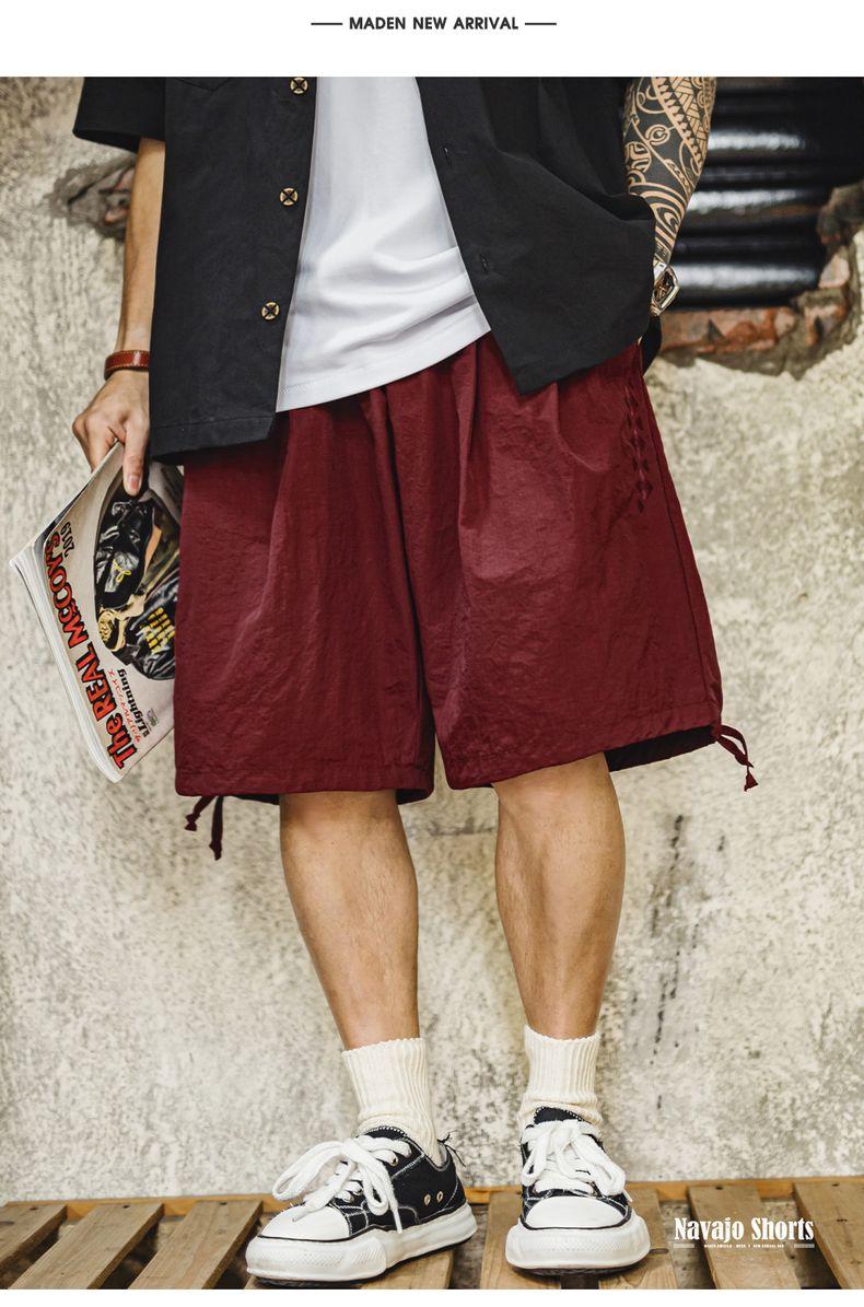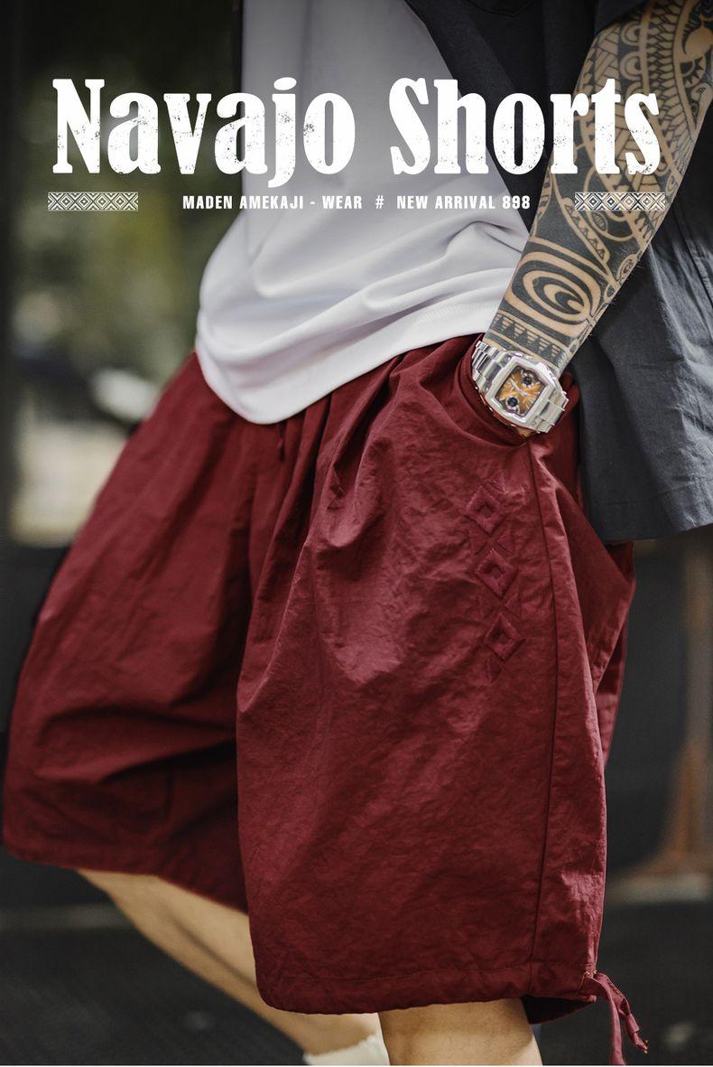 Quần đùi thêu phong cách Navajo Mỹ MADEN - Dáng rộng, màu đỏ họa tiết, nhẹ, kiểu Bermuda cho nam mùa hè