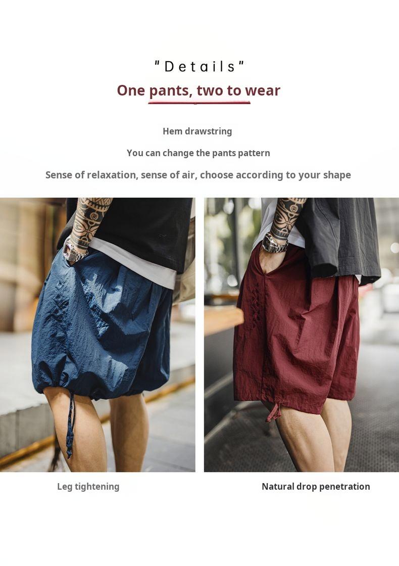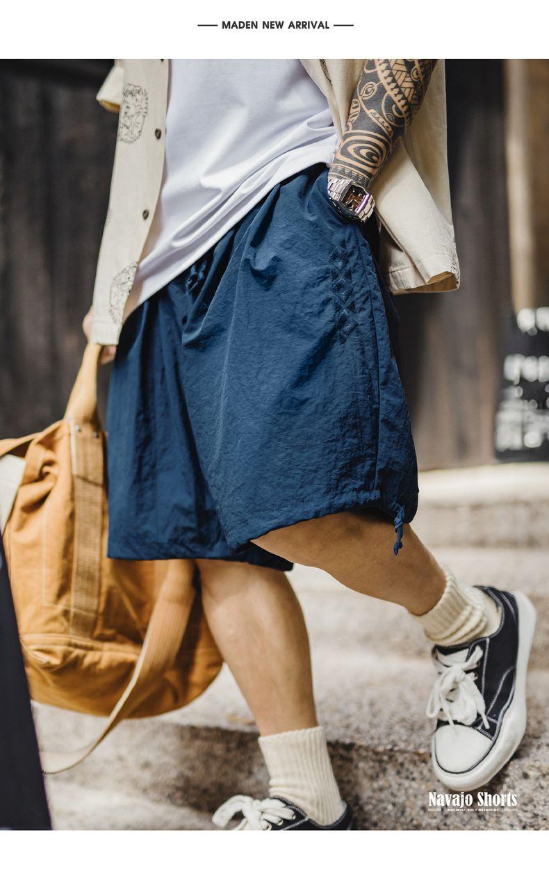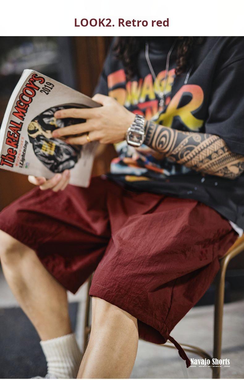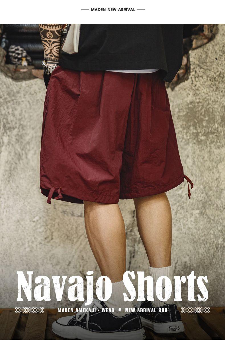 Quần đùi thêu phong cách Navajo Mỹ MADEN - Dáng rộng, màu đỏ họa tiết, nhẹ, kiểu Bermuda cho nam mùa hè